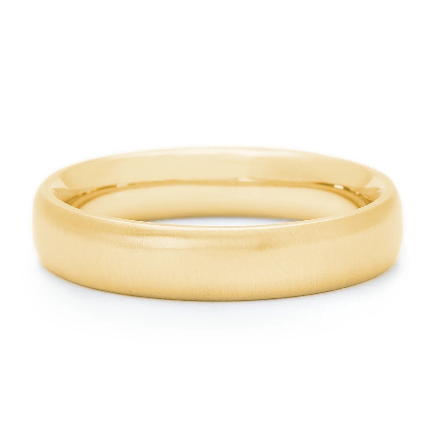 The slight comfort fit and 5mm width gives this contemporary gold band an unparalleled comfort and longevity.