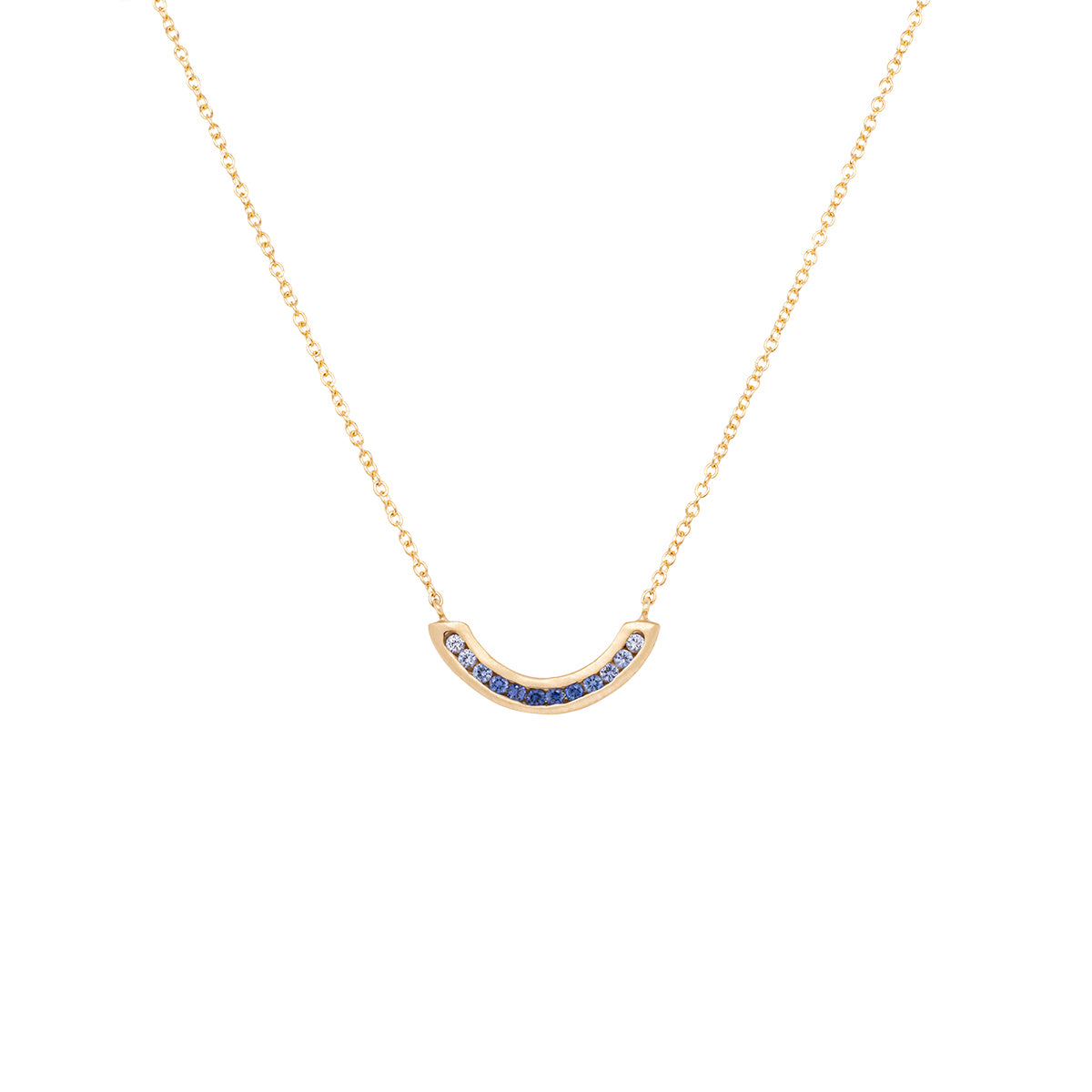 Enchanting ombre blue sapphires glimmer in the "Cove" arc necklace.