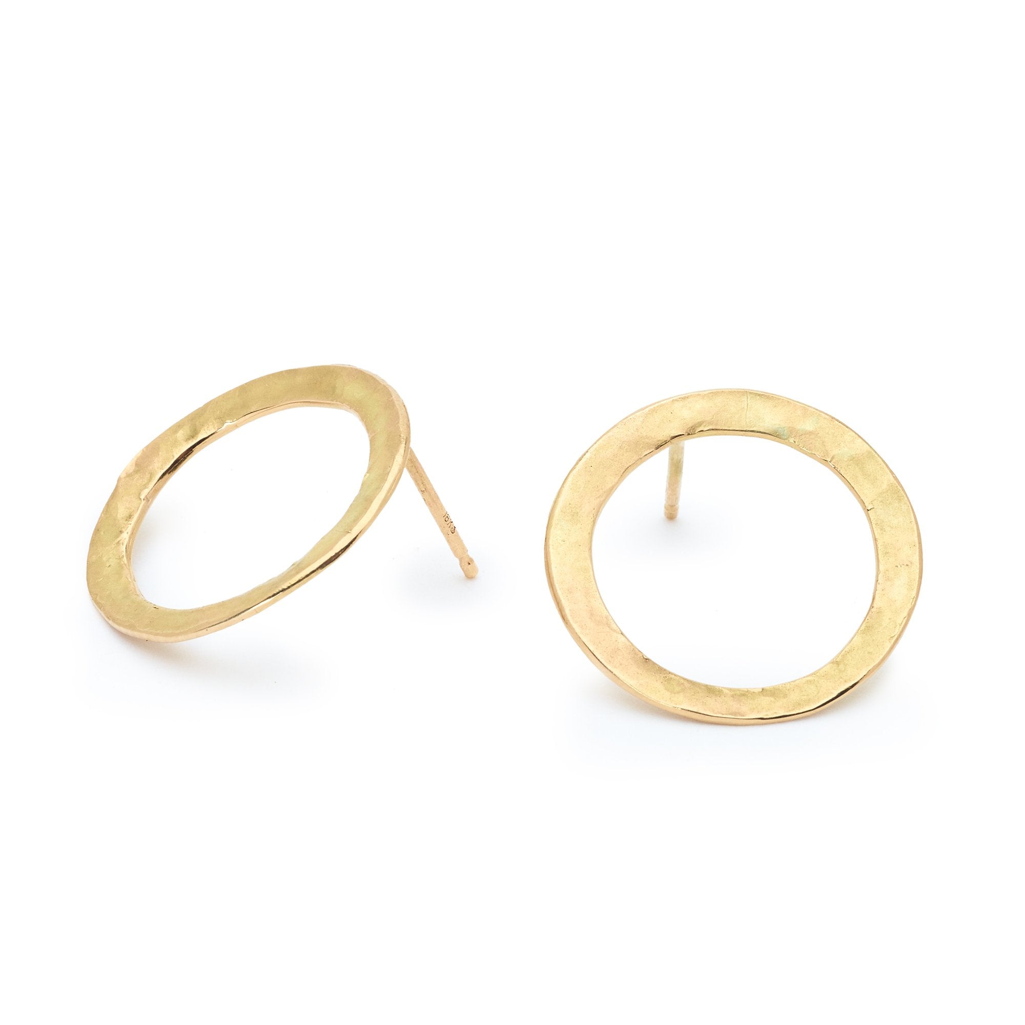 These gold earrings are made by hand with our signature hammered texture in our Toronto studio.