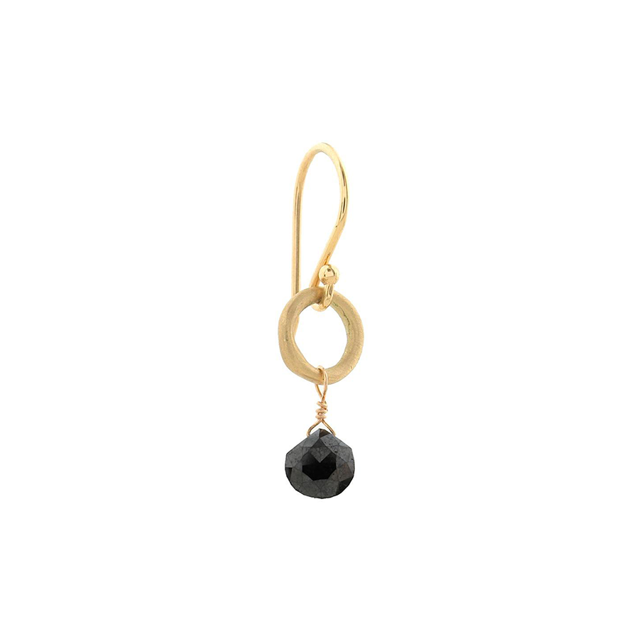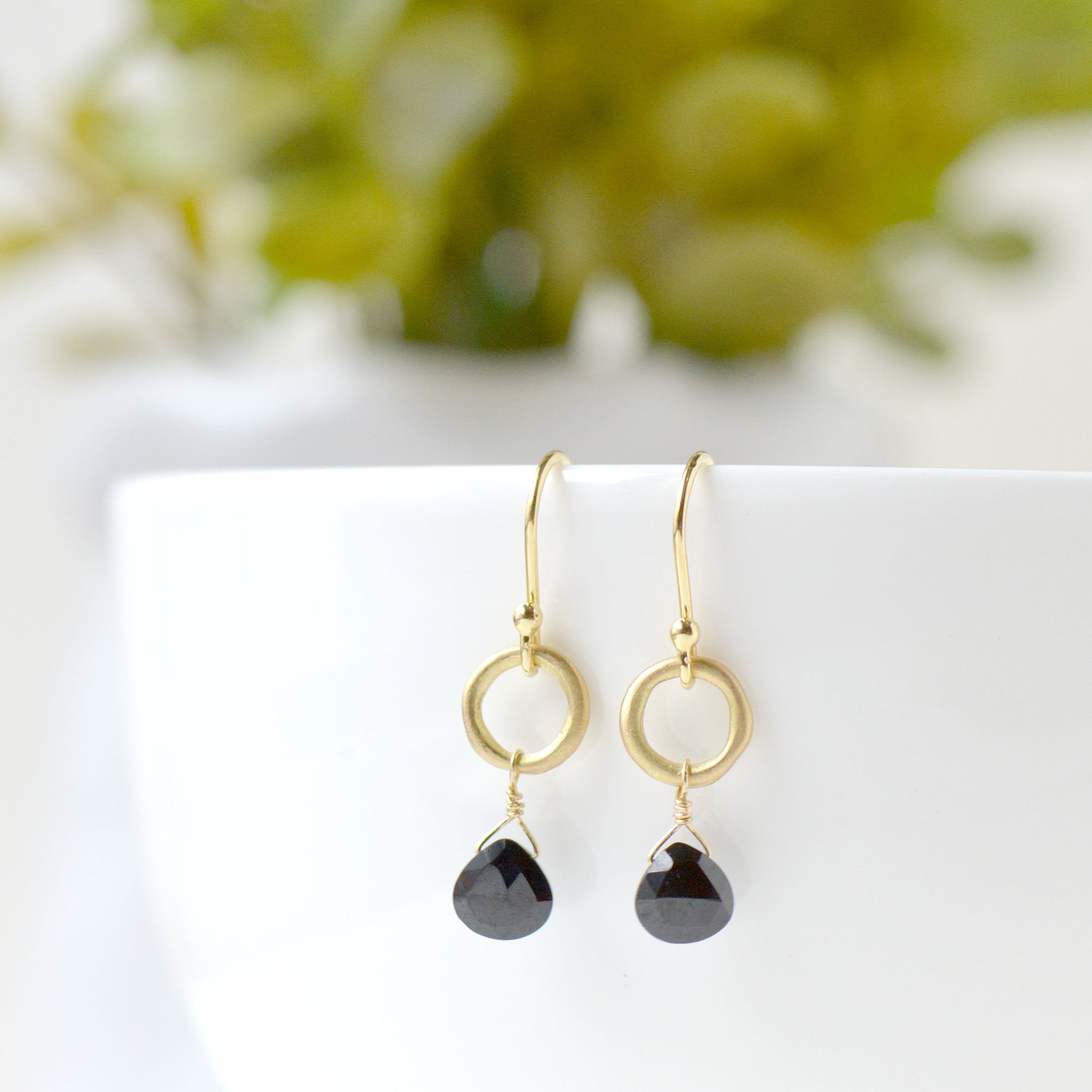 Gold hook earrings with a sweet spinel gemstone drop from our organic brushed gold circle. Total Length: ~1.25"