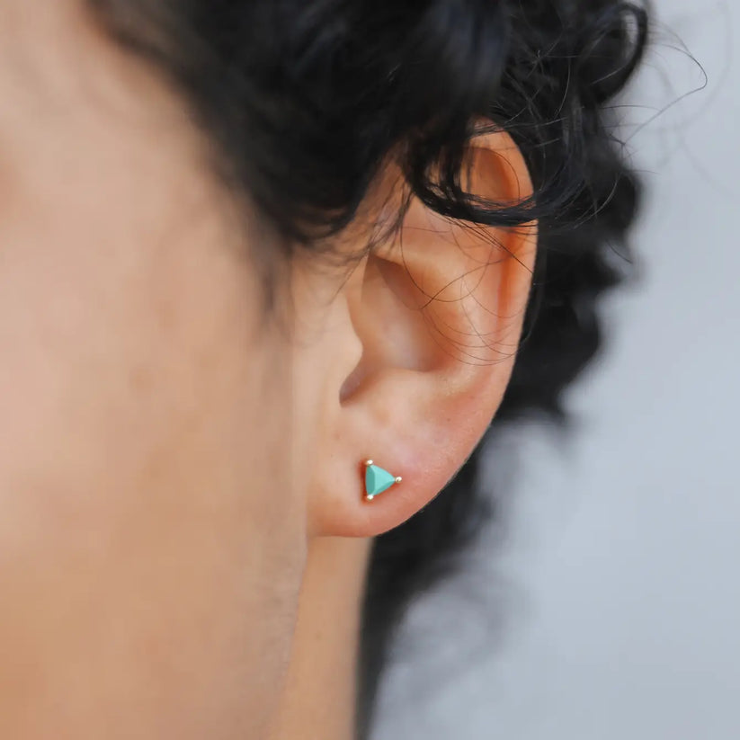 Our Mini Energy Gems are perfect little reminders to attract & manifest positive energy.  Featuring a triangular Turquoise stone set in a prong.
