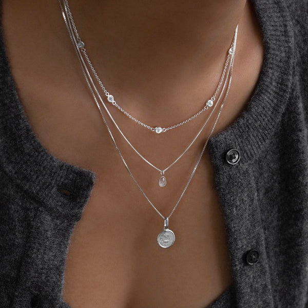 Whether worn as a layering chain or the main attraction, the Floatesse Necklace rests lightly atop your collarbone, embellished with sparkling CZ stones and accompanied by an extender to complement any look.