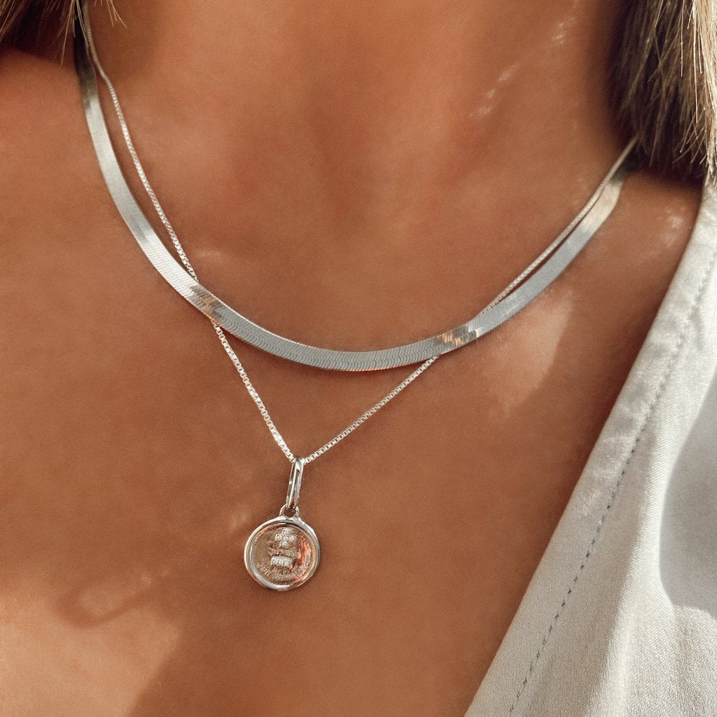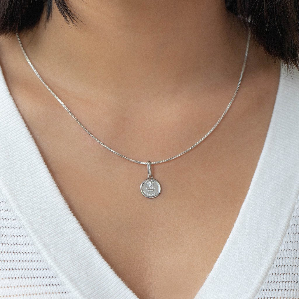 Based on Rosemonde Gerard’s 19th century French poem, the Love Token Necklace is stamped with the French sentiment "+ qu'hier – que demain". It is a symbol of growing love which translates from the poem’s French verse meaning “I love you more than yesterday and less than tomorrow”. Whether an expression of self-love, romance, or friendship, this pendant is as meaningful as it is franco-chic.