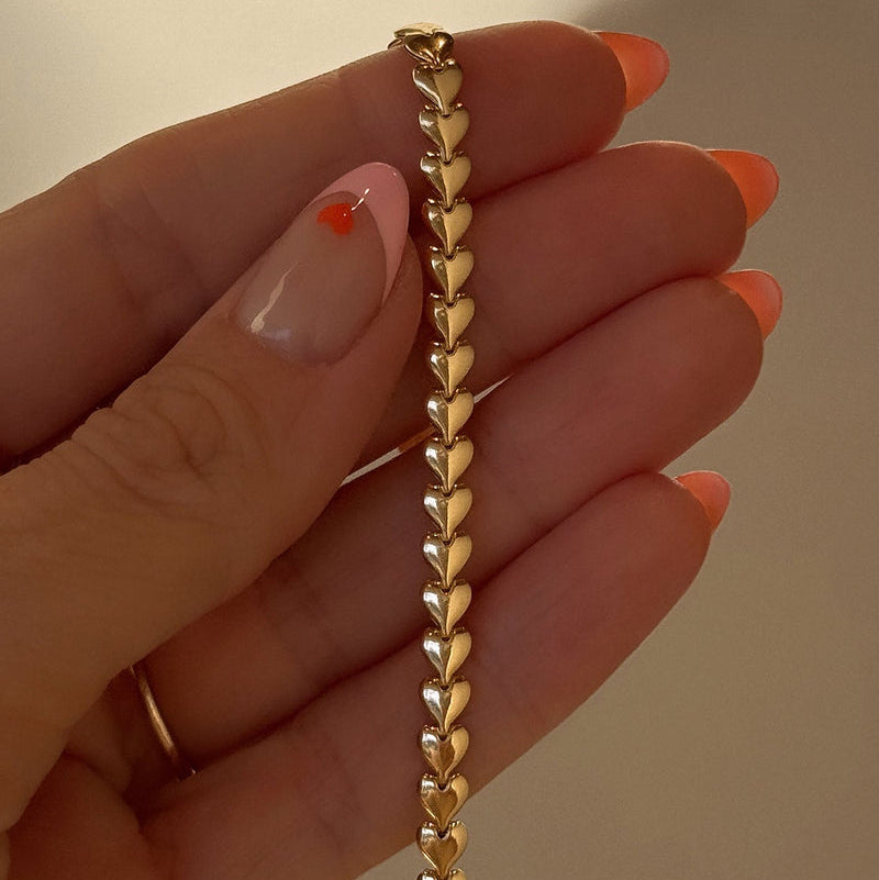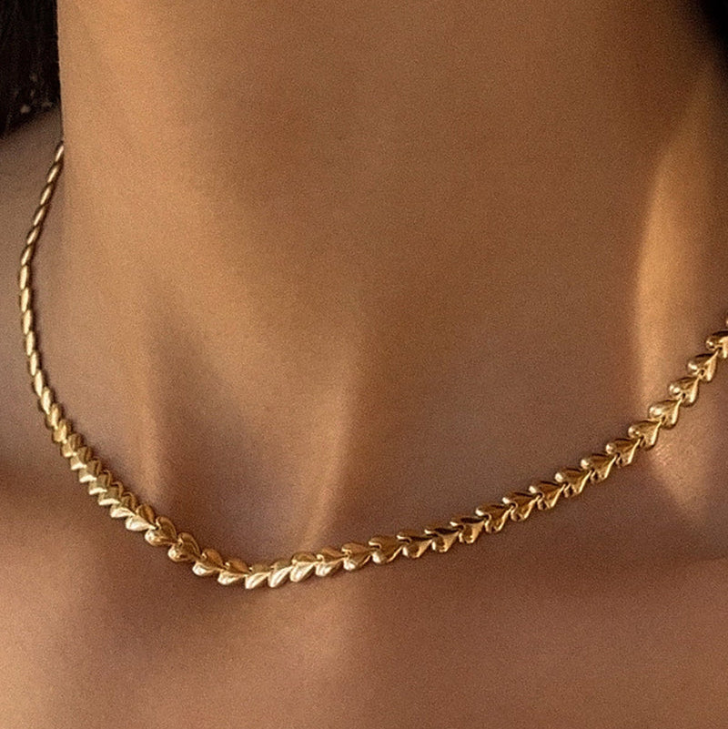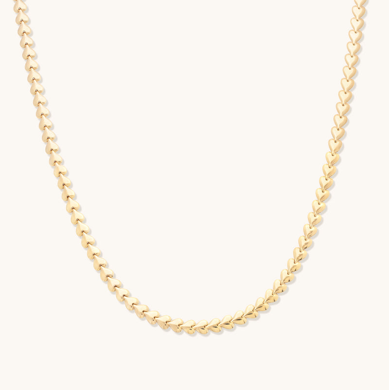 Our Herringheart chain necklace is a modern take on a classic piece. These endless connected hearts lay flat and reflect the light perfectly. Get ready to radiate love!