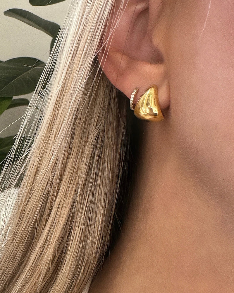 Claw hoops are thick and gold with the perfect fold to suit any ear stack. Meet your new everyday earrings!