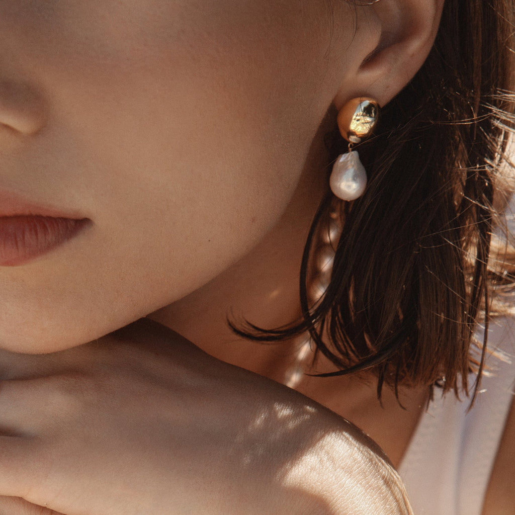 Leah's Rosette earrings pair sculptured gold with natural pearls. The result is a bold, organic piece. These earrings will carry you from end of summer days, to crisp cashmere sweater weather, to formal holiday evenings.
