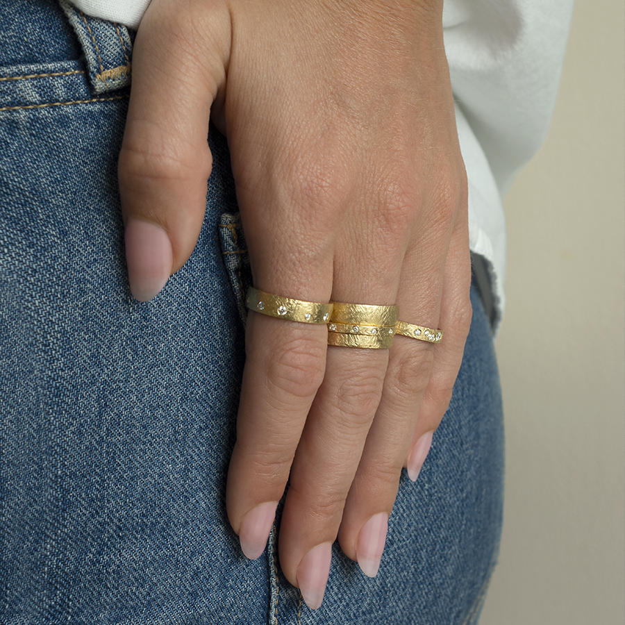 Intentionally hand carved rough "Boulder" textured cigar band with substantial weight and comfort fit make this a luxurious feeling band to stack or let it shine on its own.