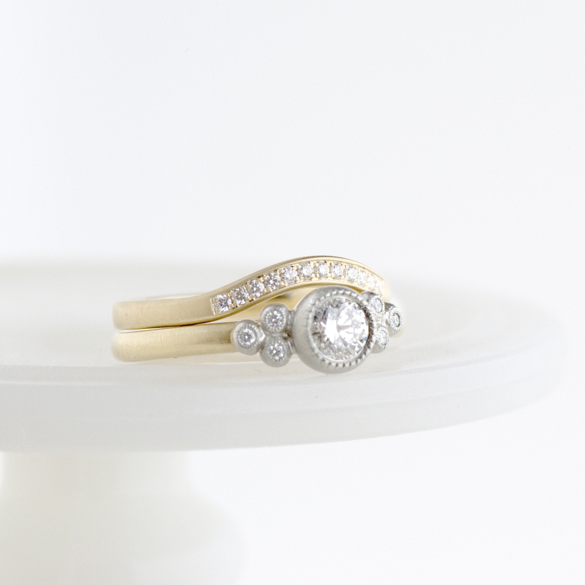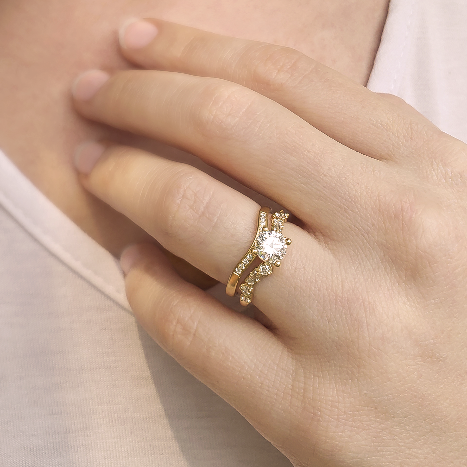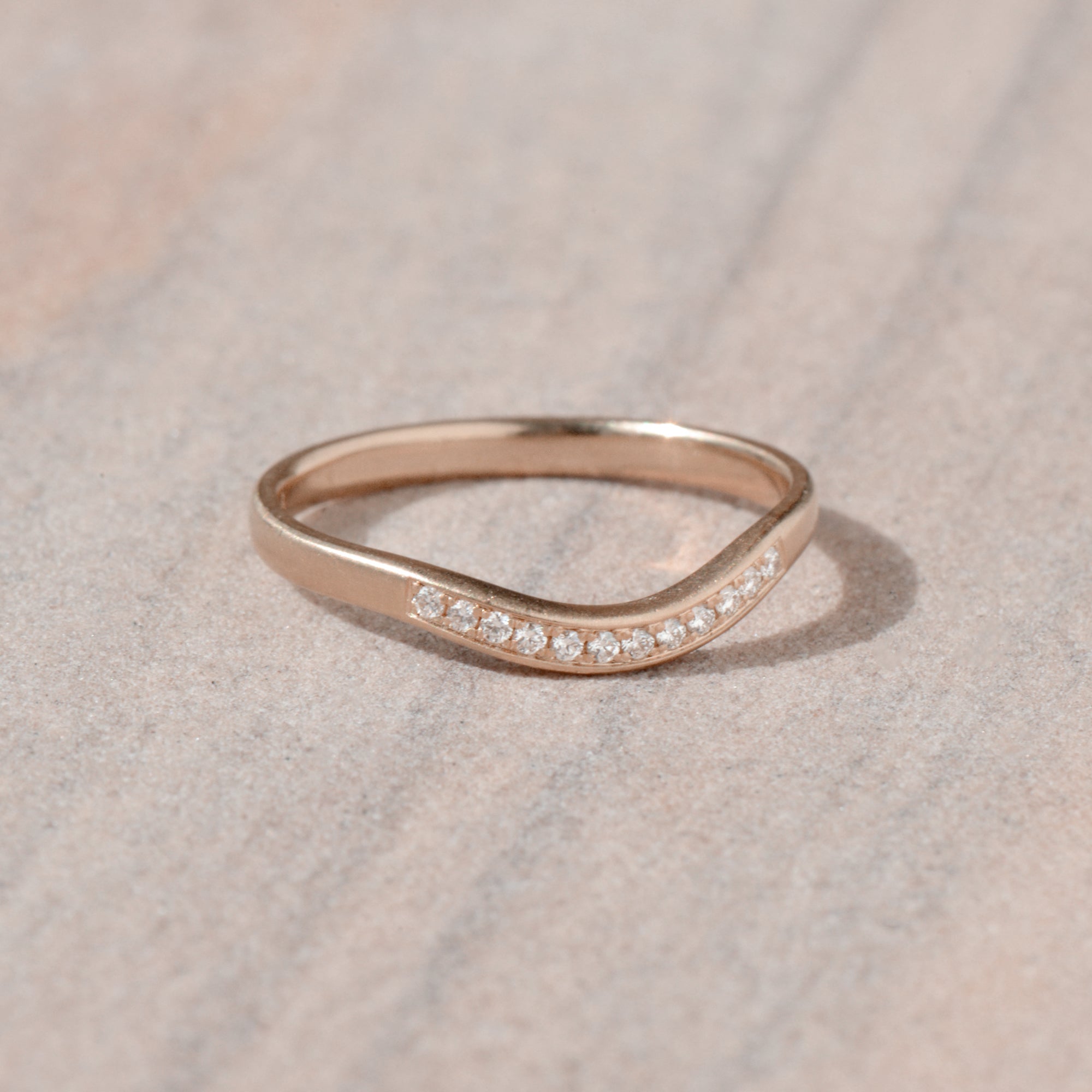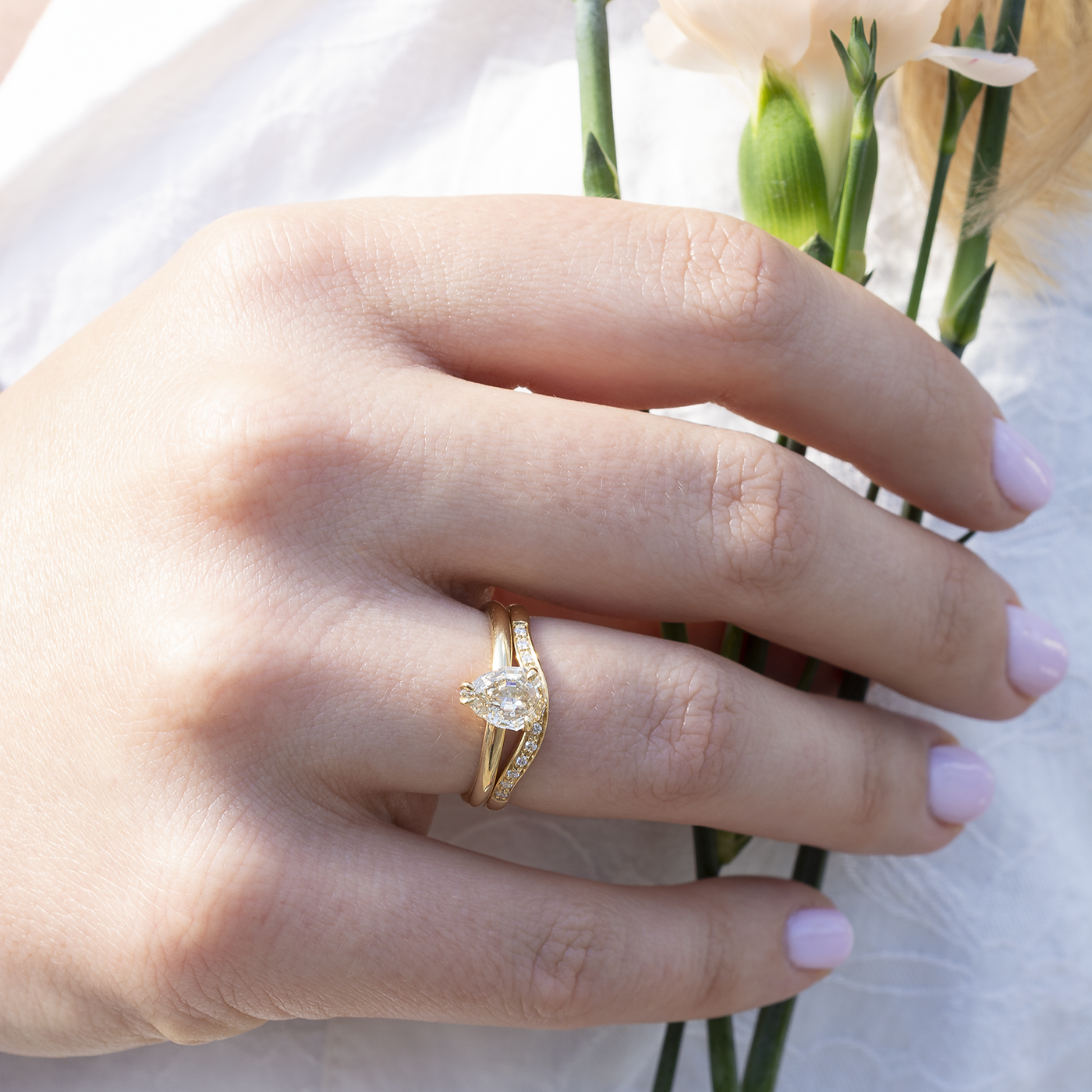 Gorgeous on its own, or paired with a diamond ring, you'll love this gold jacket band with round brilliant cut diamonds pave in cup shape (12 x 1.1mm).