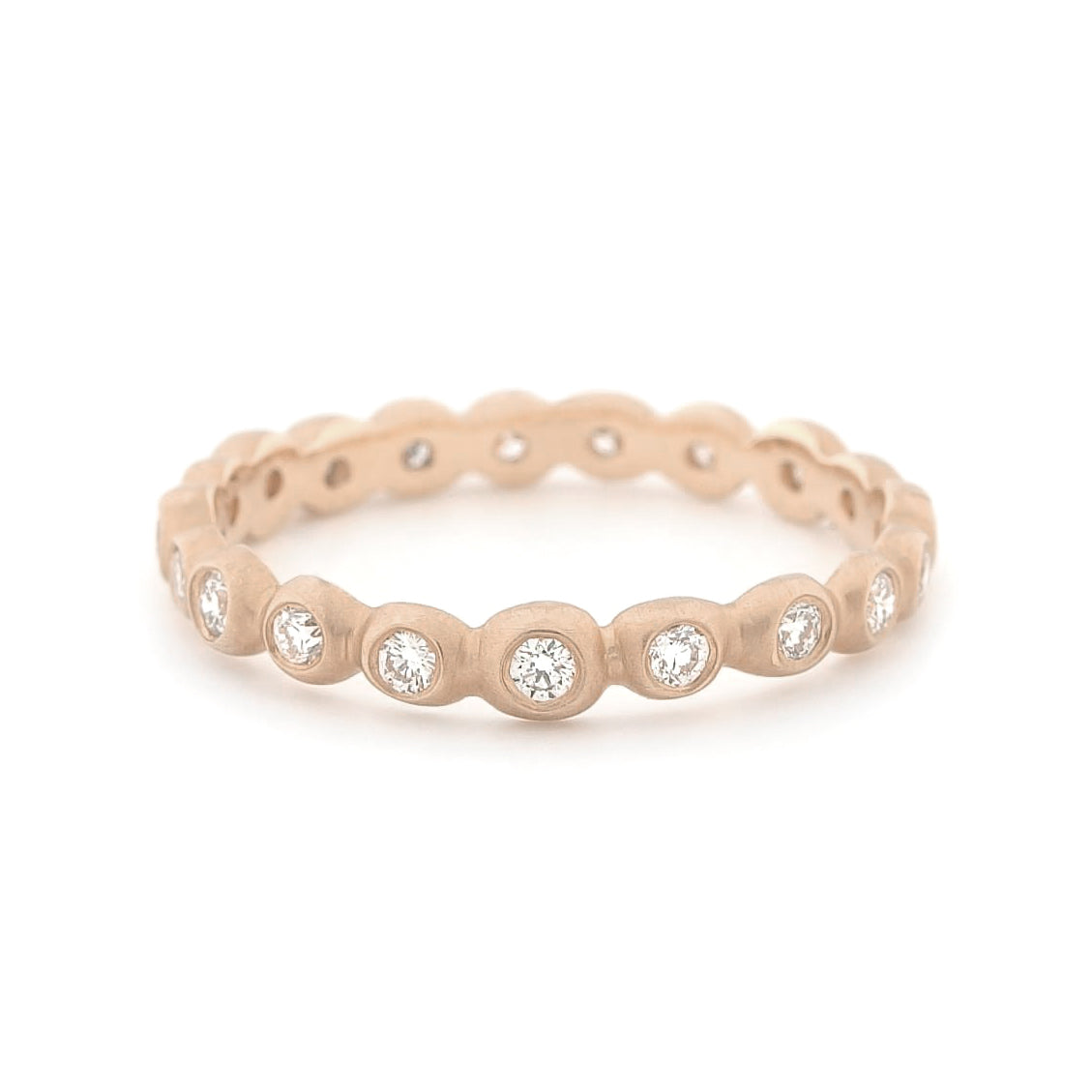 A more amply proportioned cousin of the Diamond Seed Band; this versatile piece utilizes the added fire of the 0.02ct diamonds sets within each circle. This ring looks great added to a stack.