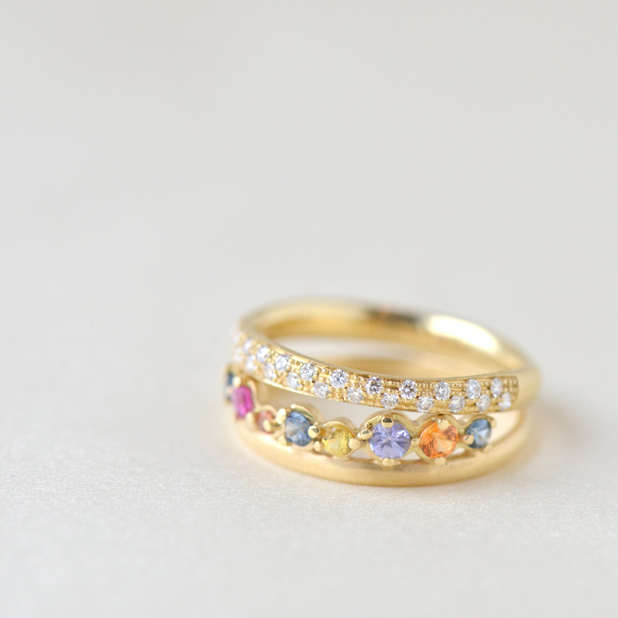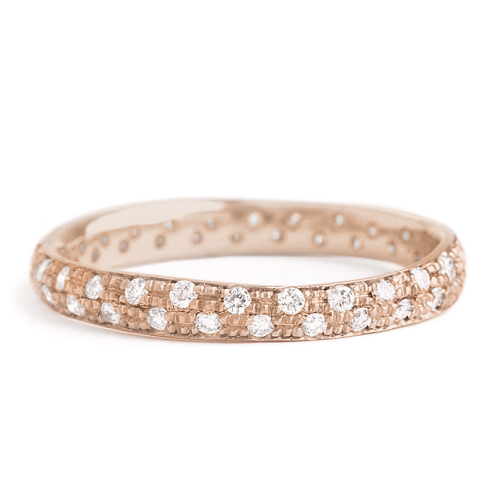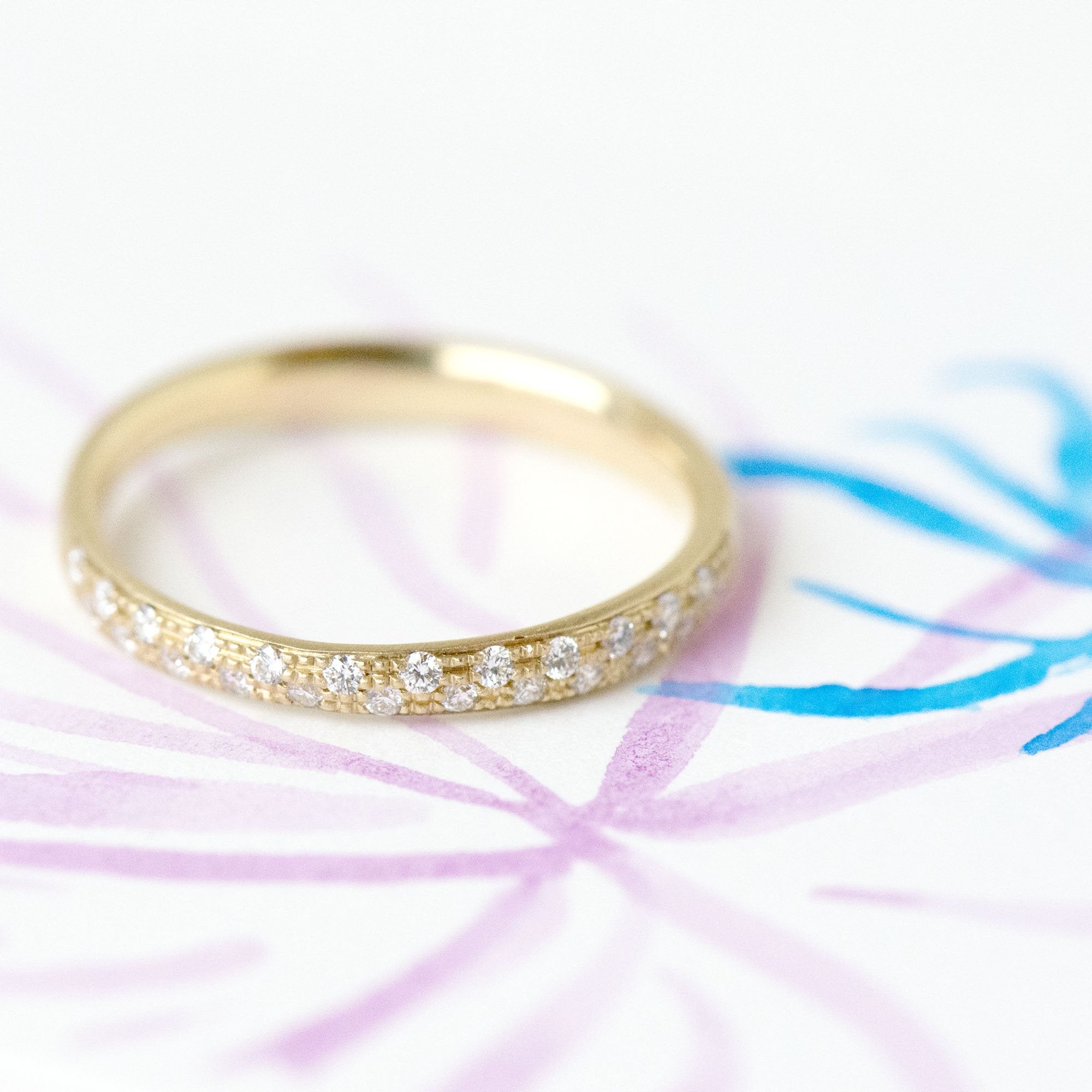 Gold band pave set with 0.008ct round brilliant cut G/VS diamonds.