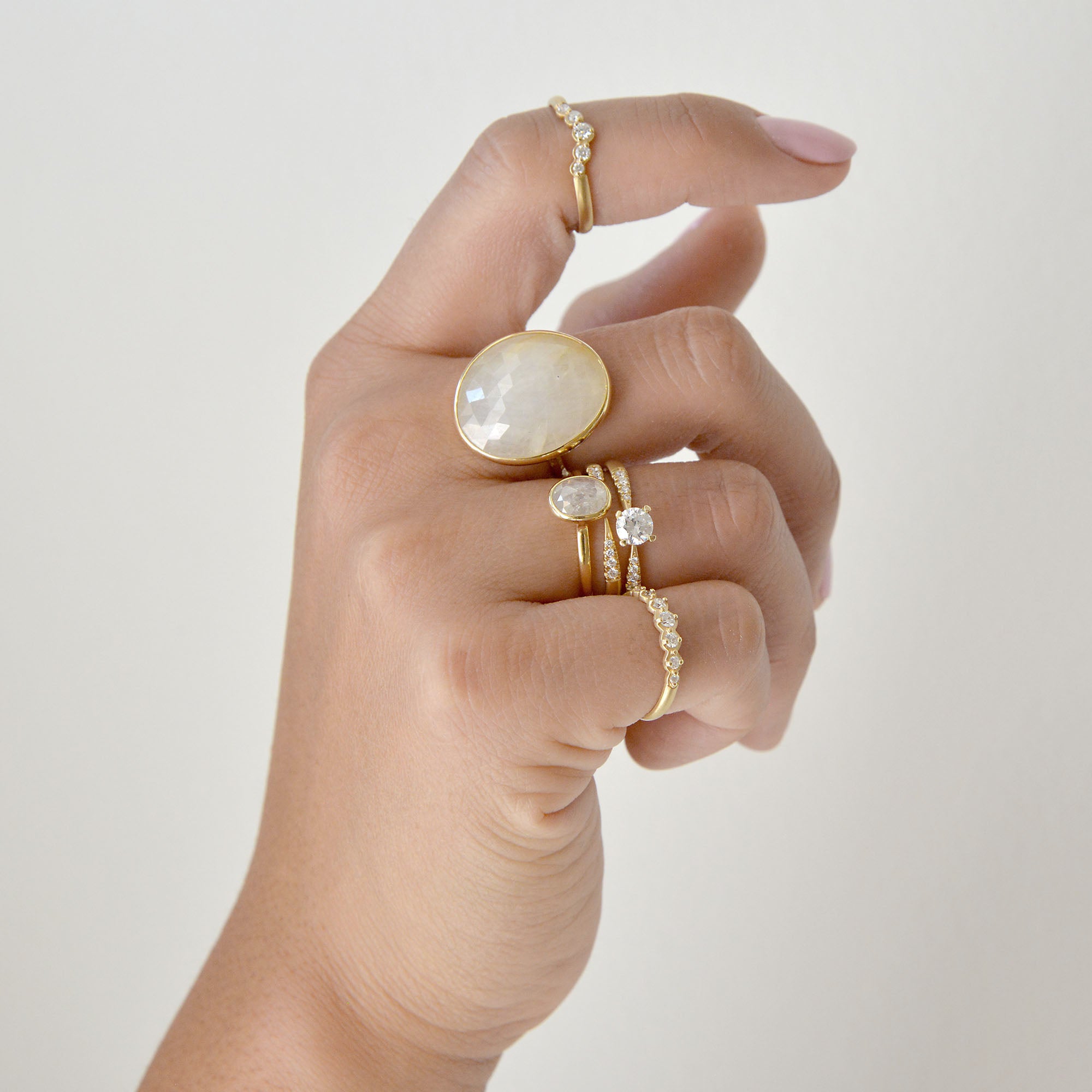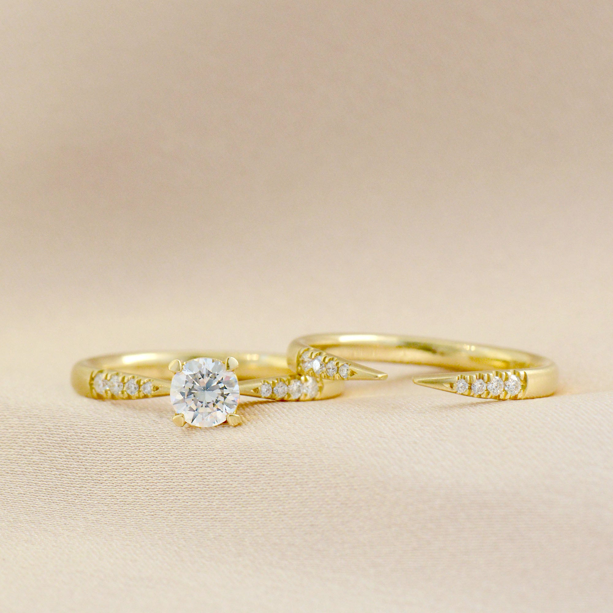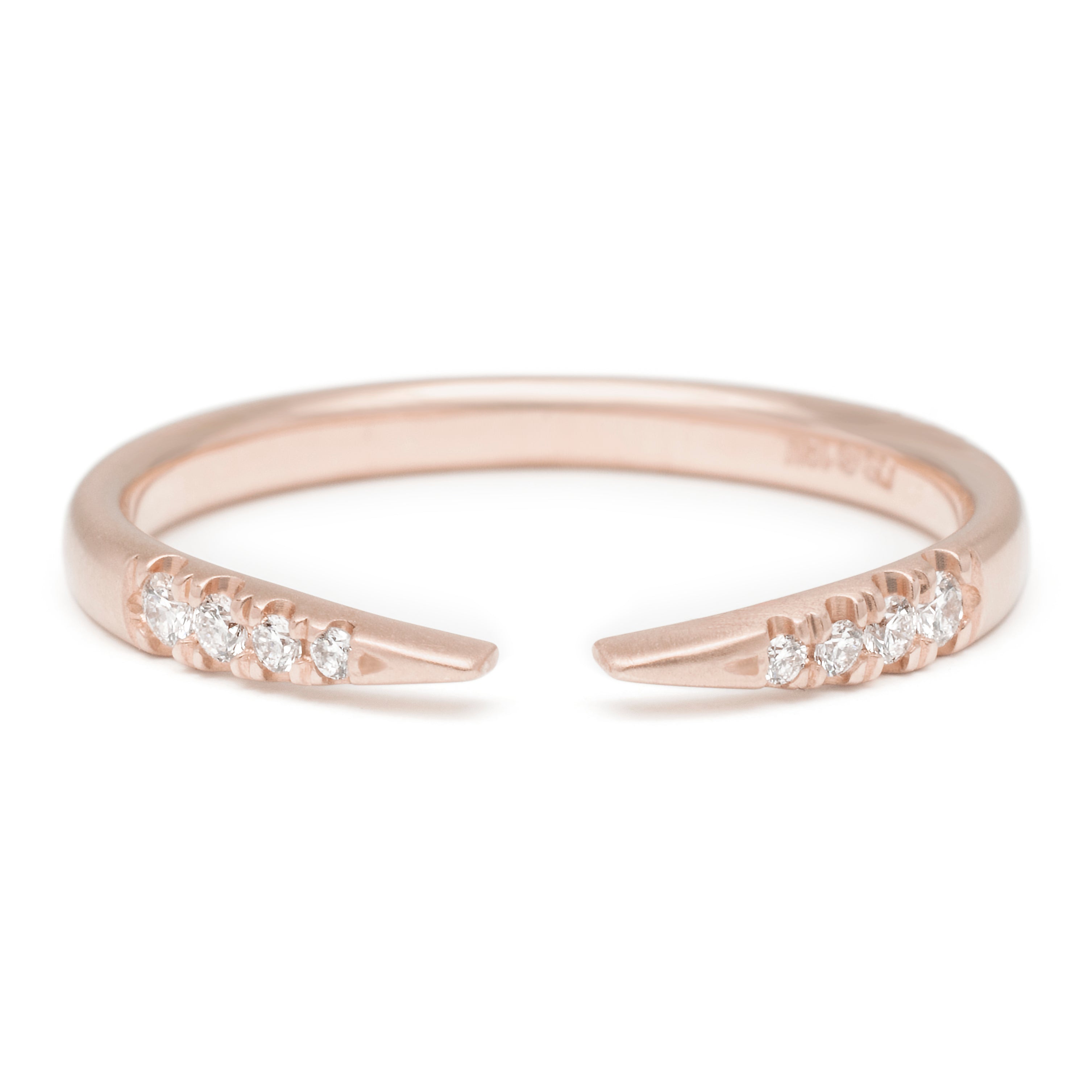 Gold open band with 4 graduating diamonds on either side coming to a point, ~2mm wide *High Polished*