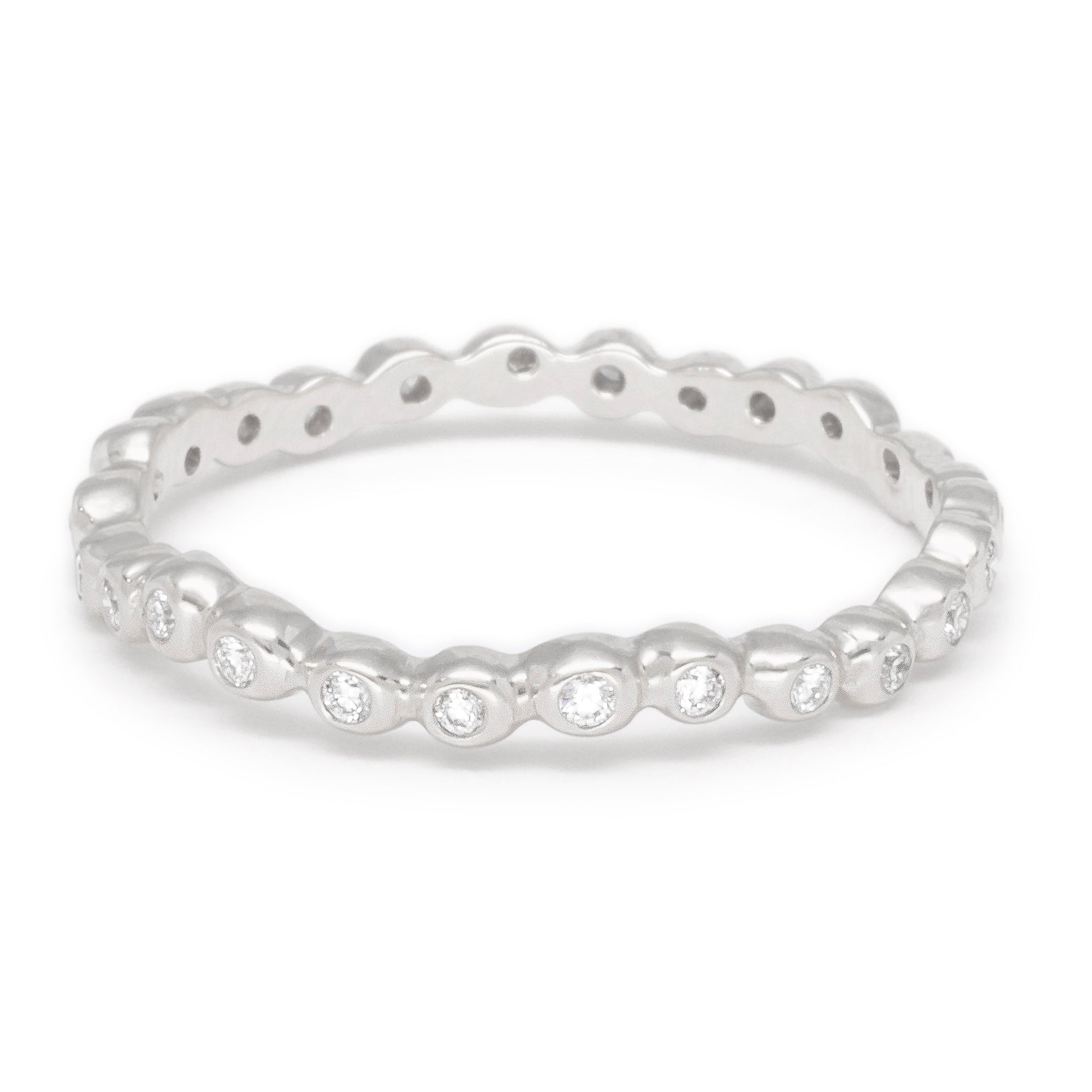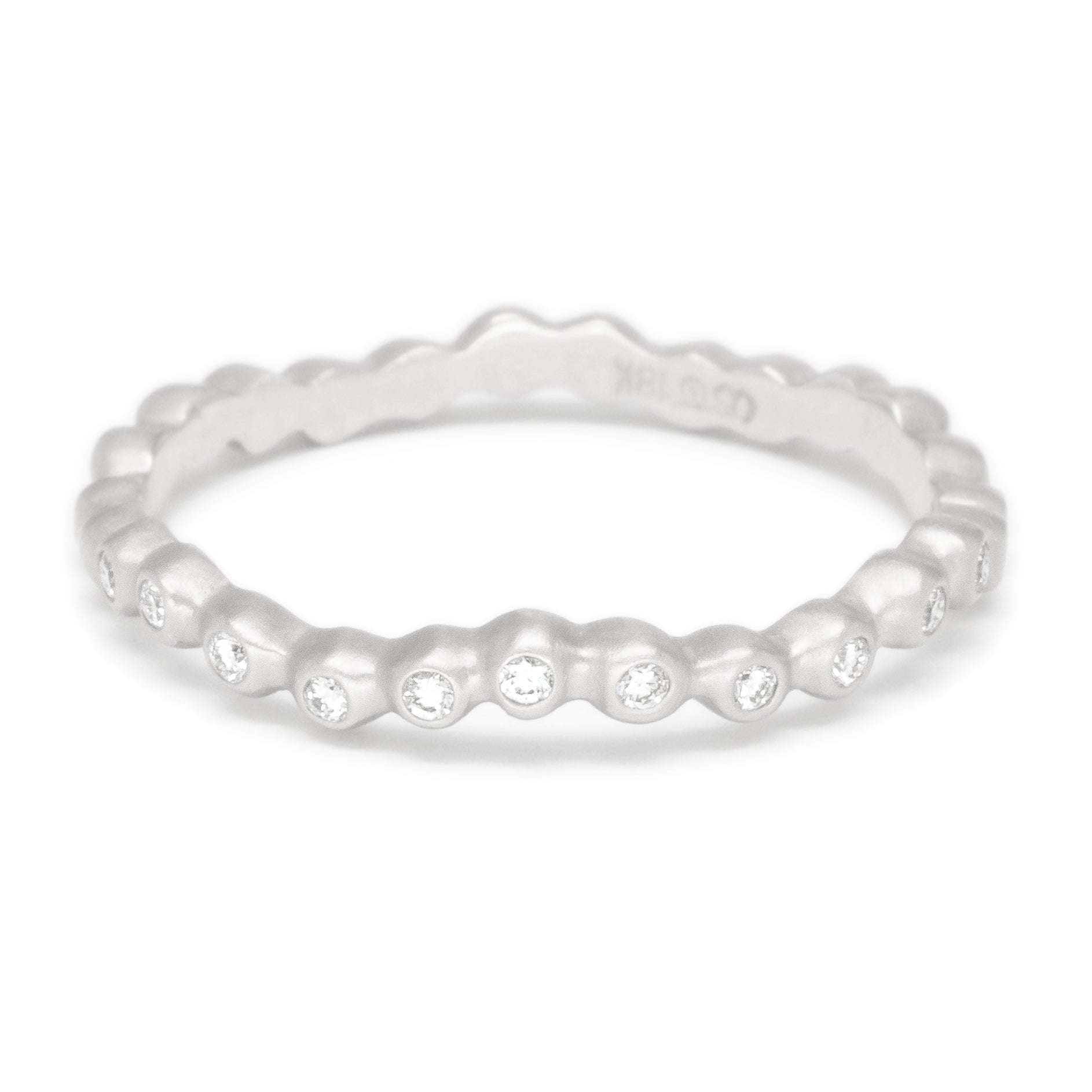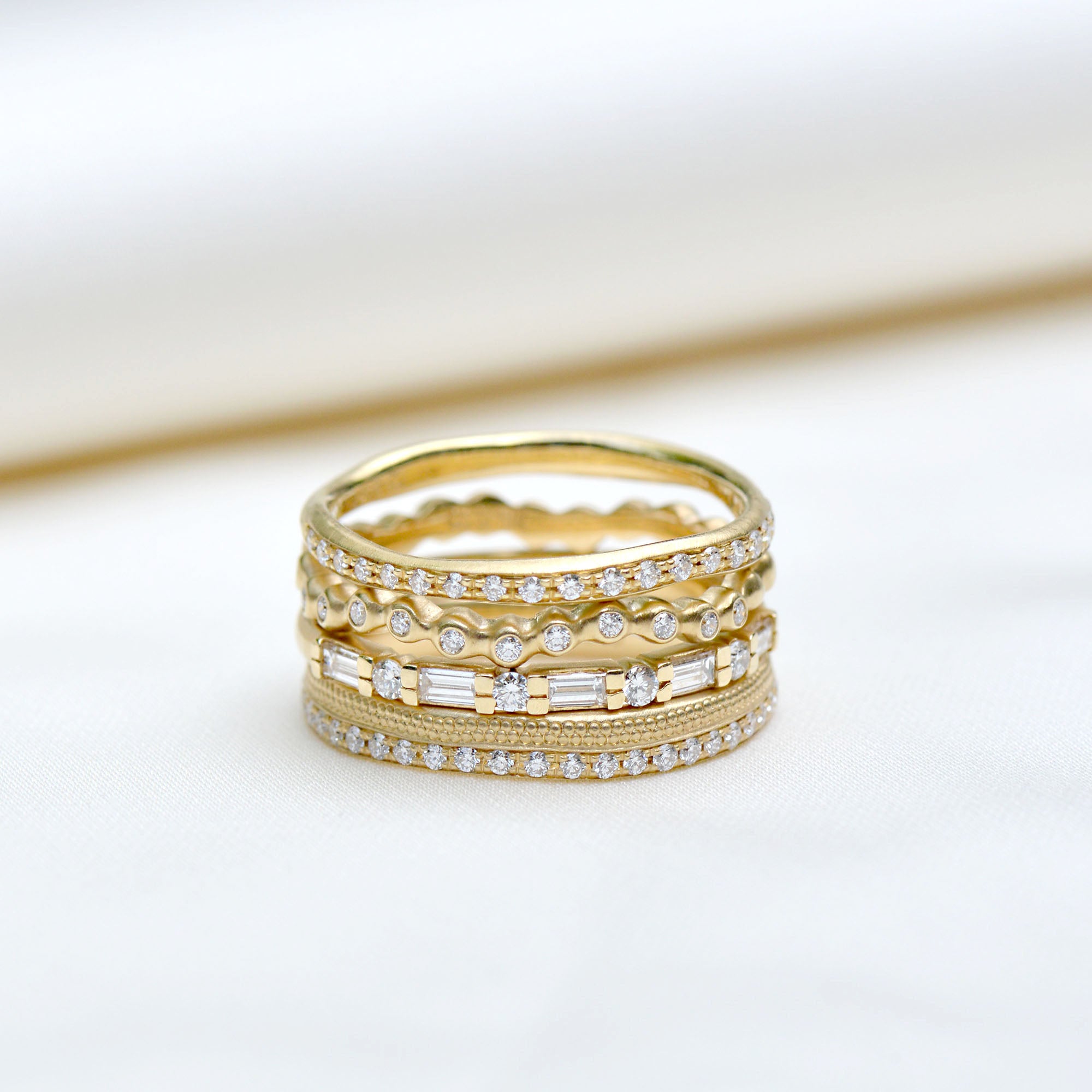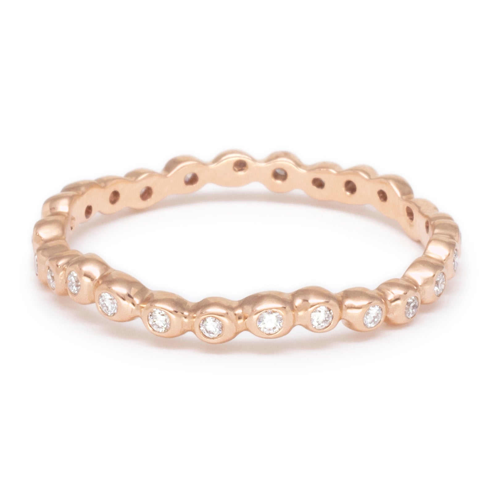 Gold wave seed band ring with round brilliant cut G-VS diamonds (0.006ct) either half way around or full way around. ~2mm wide band.