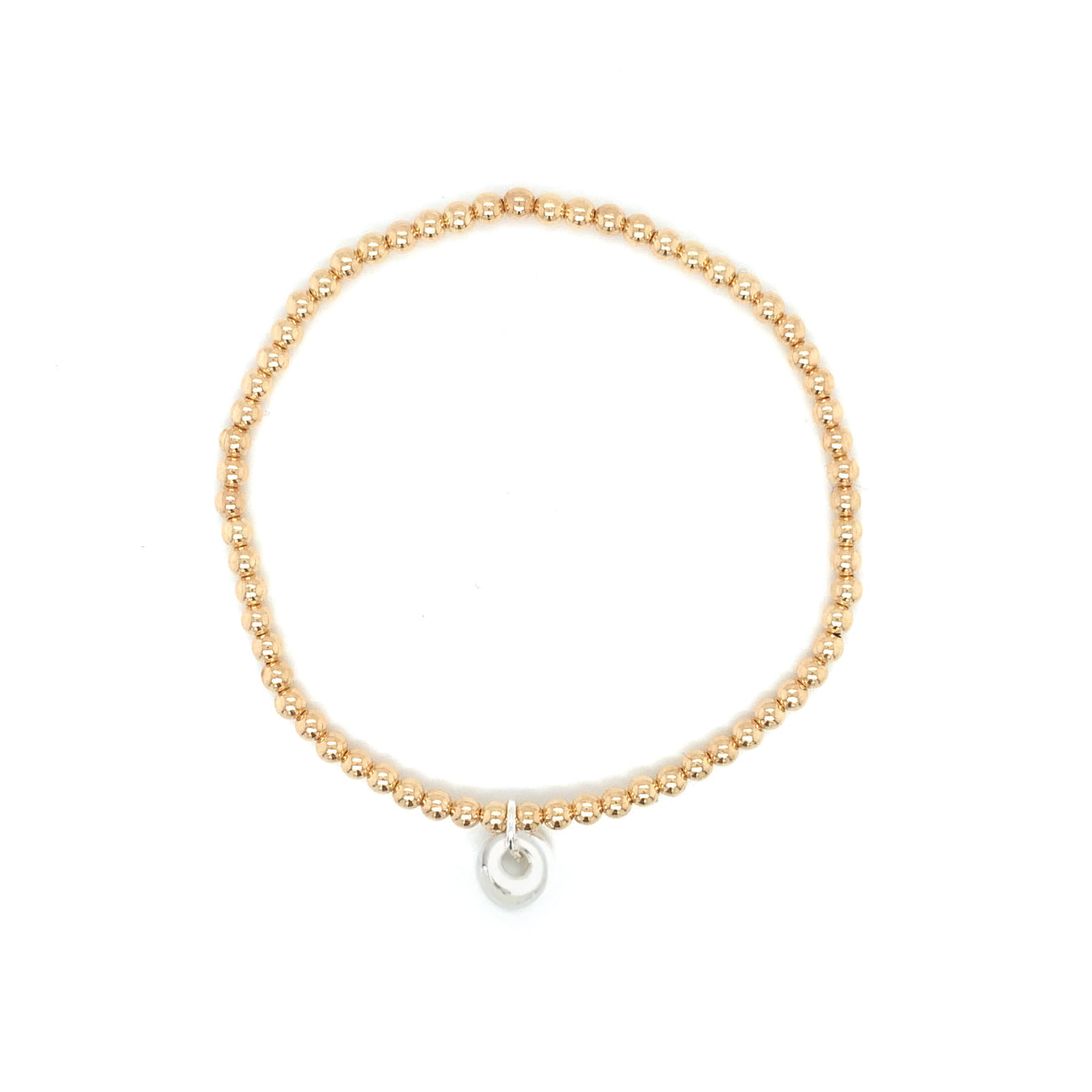 You asked and we delivered...the ever-popular stretchie baby bracelet goes two-tone! Features a random silver lucky stone.