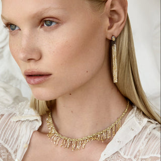 N° 937 Diamond Medallion Chain Tassel Mixed Metal Earrings
