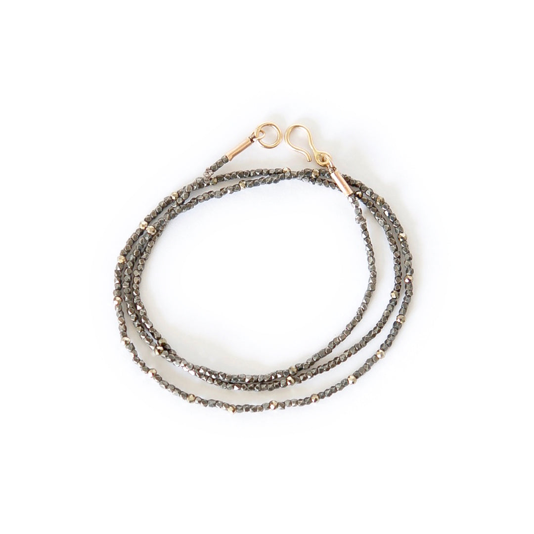 Oxidize Thai Hill Tribe silver beads dotted with faceted pyrite beads.