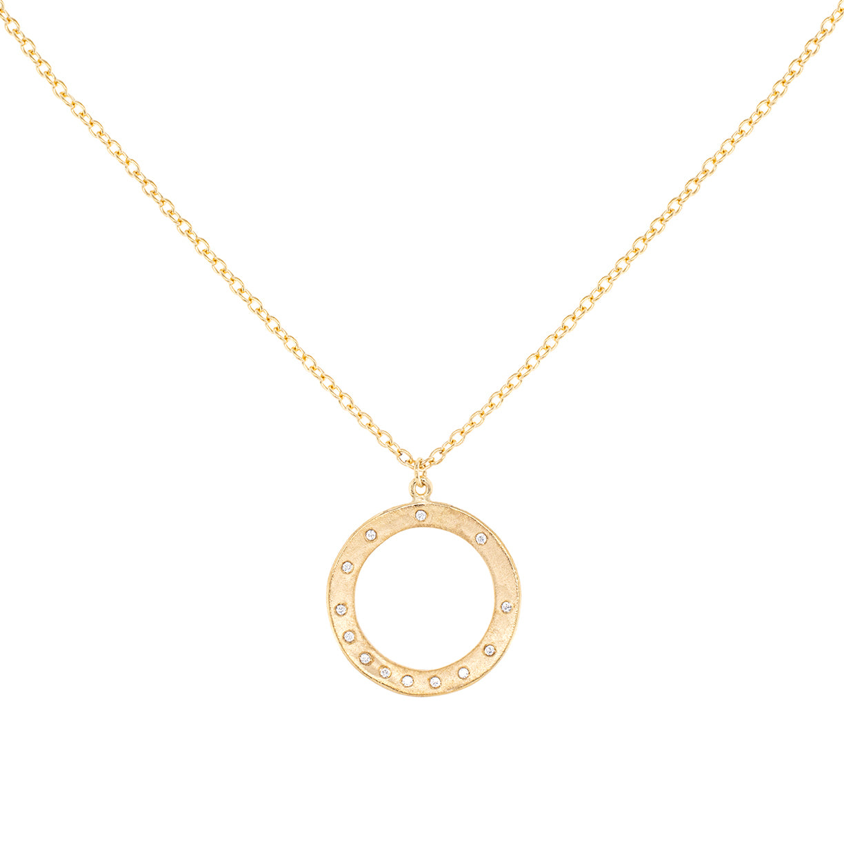 Open Hammered Diamond Spray Circle Necklace