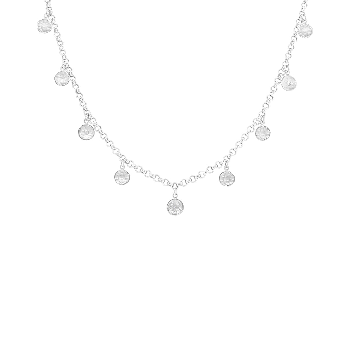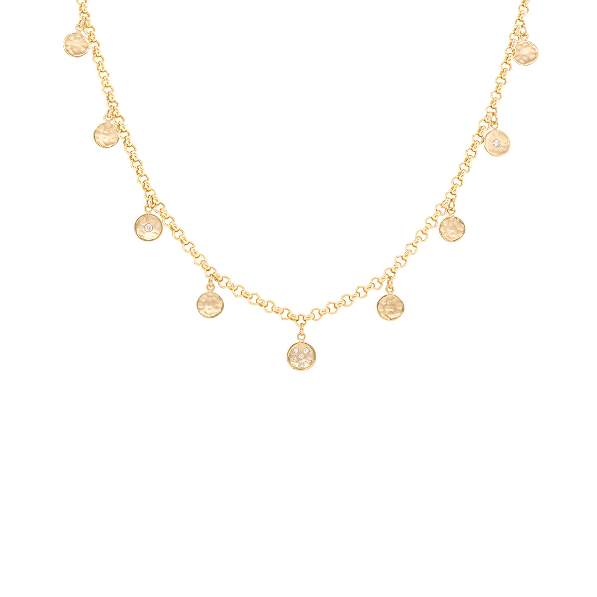 Rolo Stationed Hammered Disc Diamond Spray Necklace