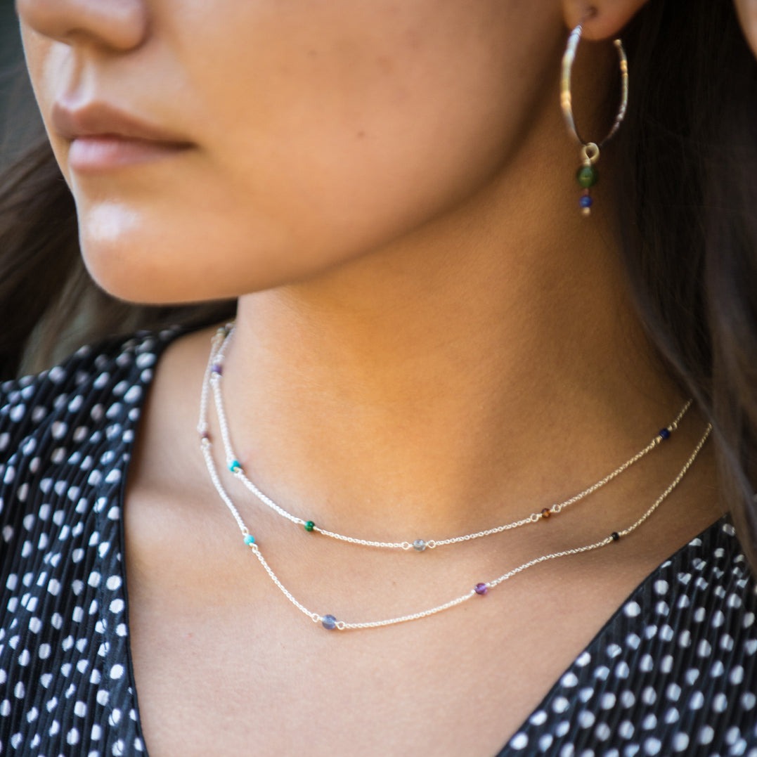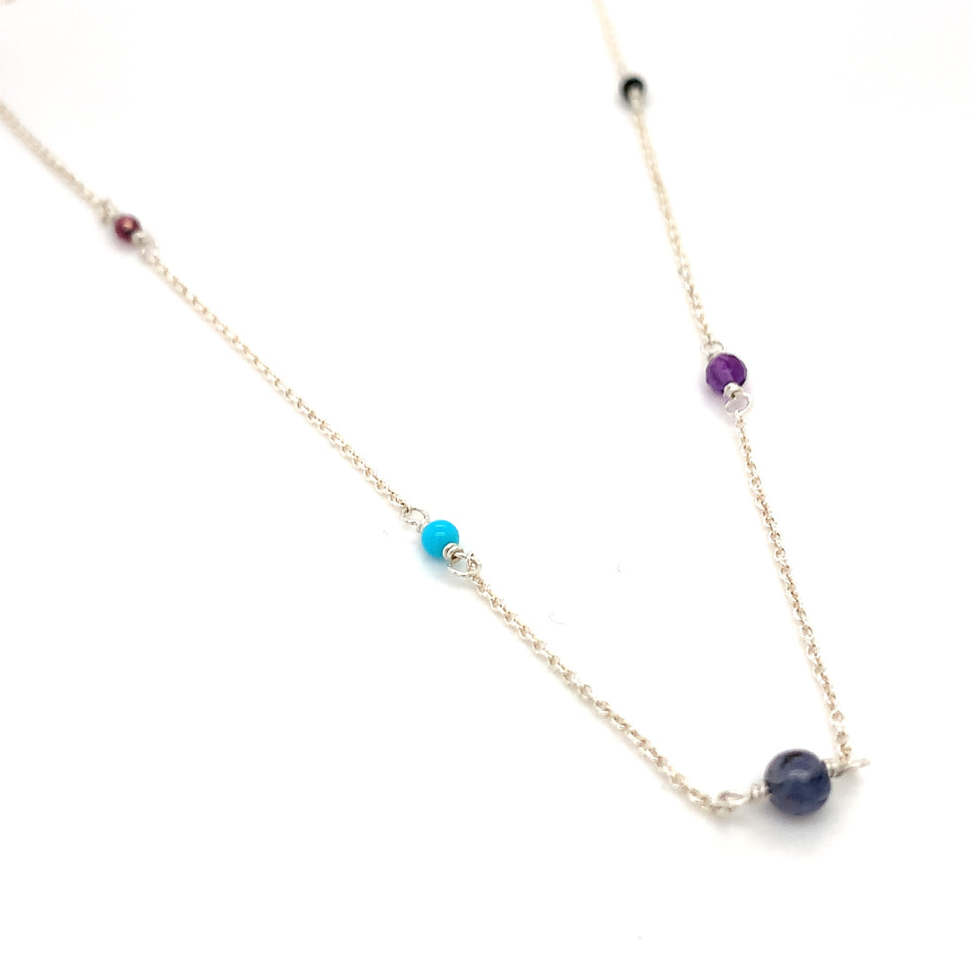 Sterling Silver 1.1mm Chain with a Mixture of precious stones of various shapes and sizes - Your necklace will be unique to you (not as pictured)