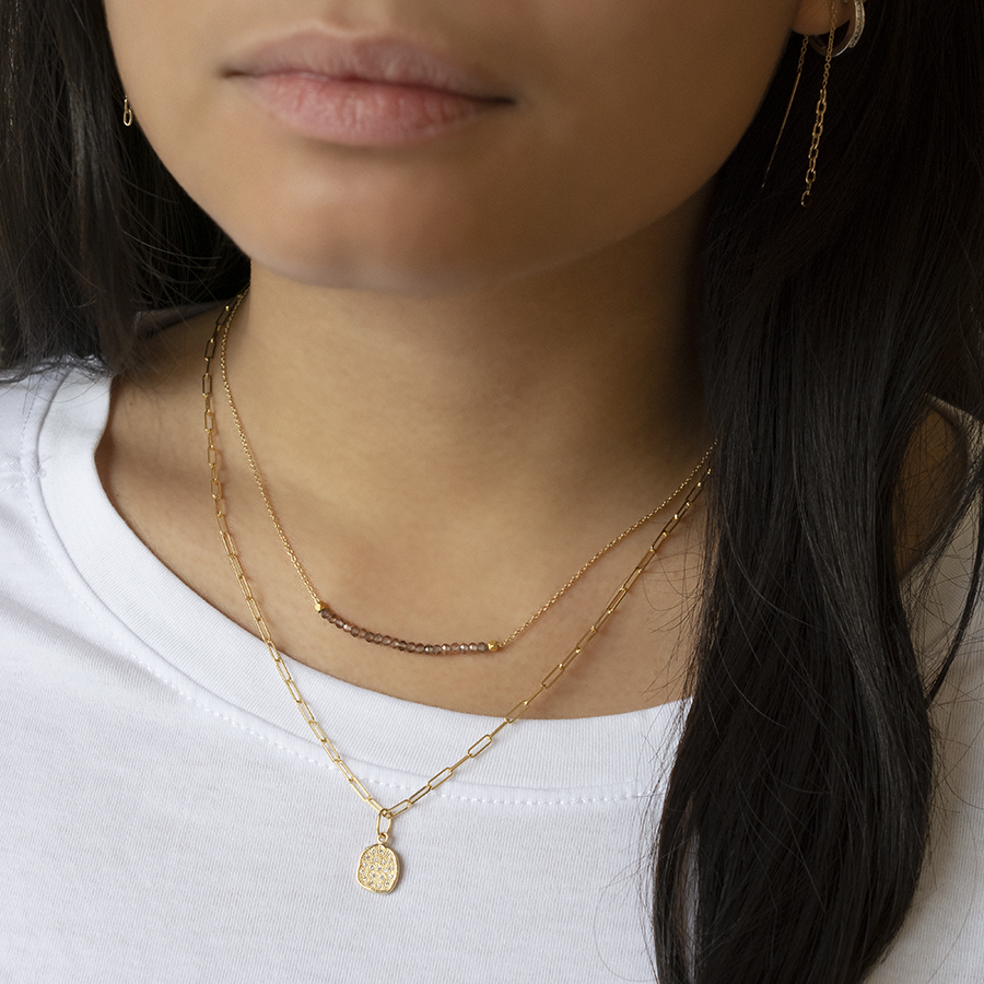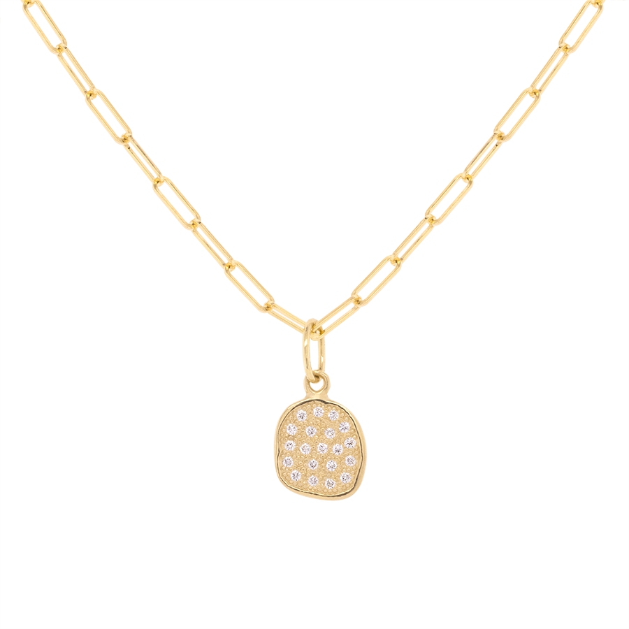 A combination we just couldn't resist: Our delicate paperclip chain paired with the organic gold 'Stardust' pebble charm, Stunning!