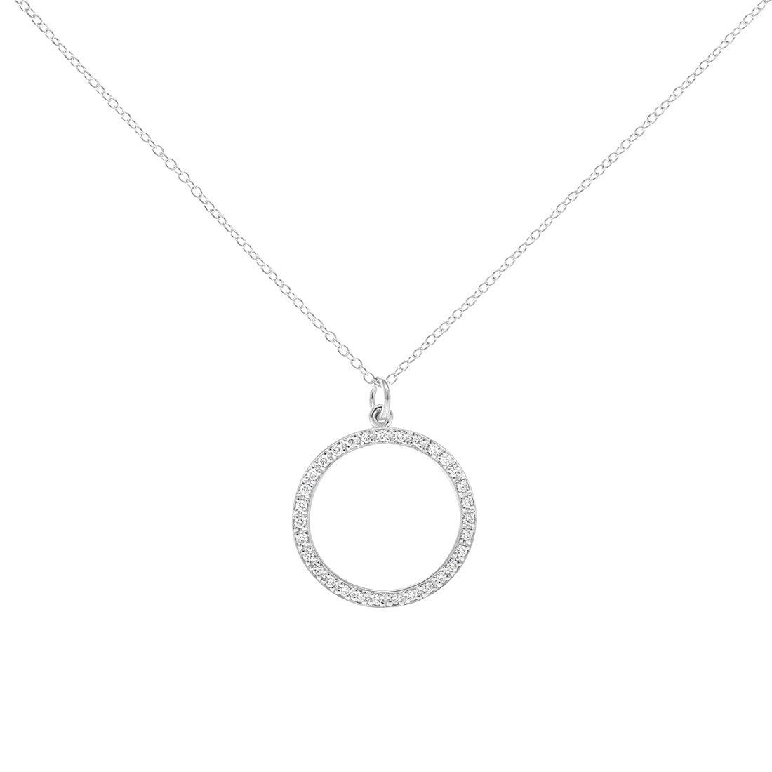 This sparkling open circle pendant is sure to declare and symbolize your everlasting love to the one you cherish.