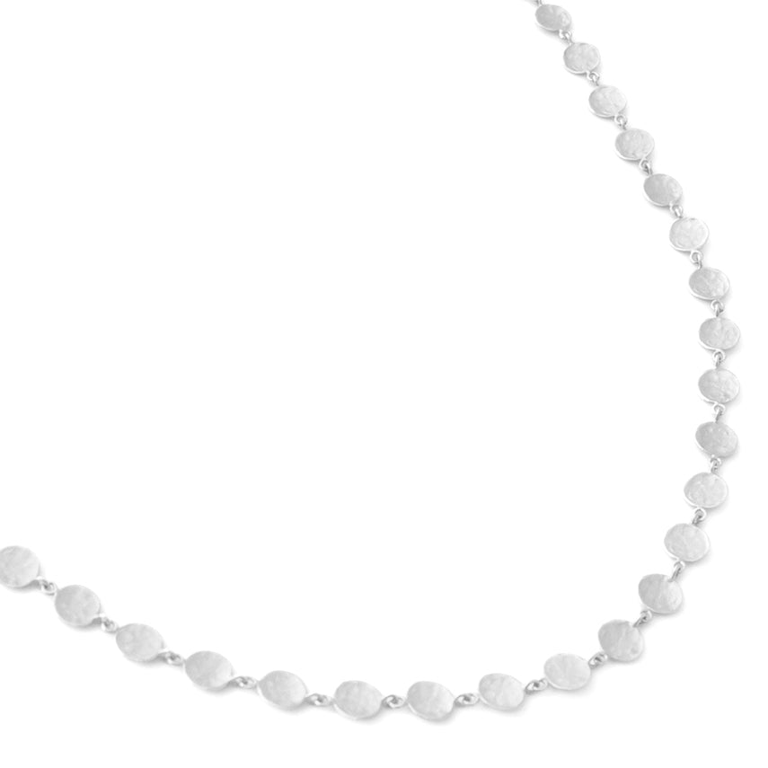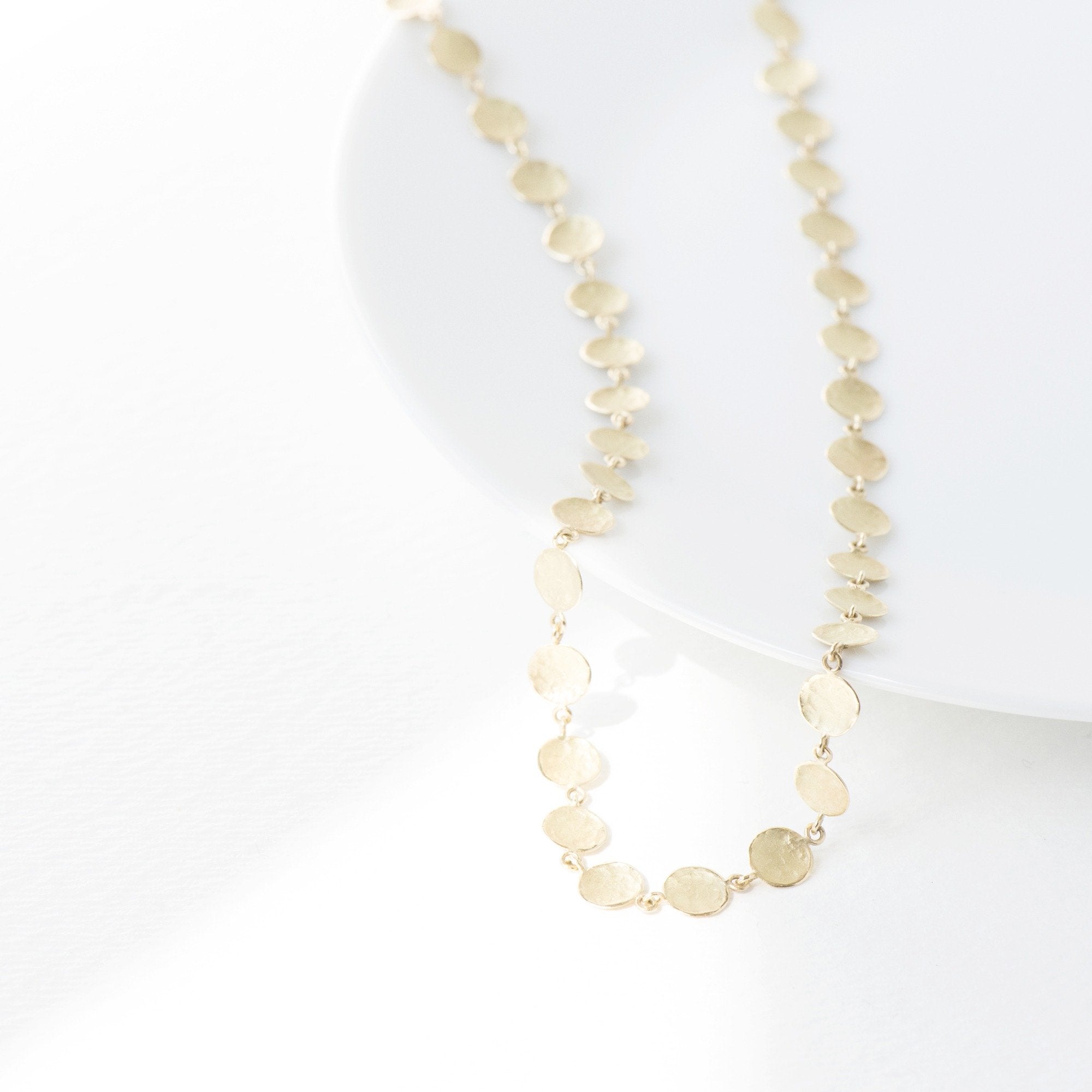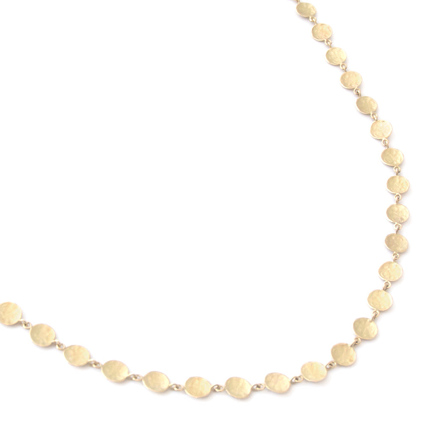 Gold 16-18" necklace with 51 small (~5mm) concave hammered discs.
