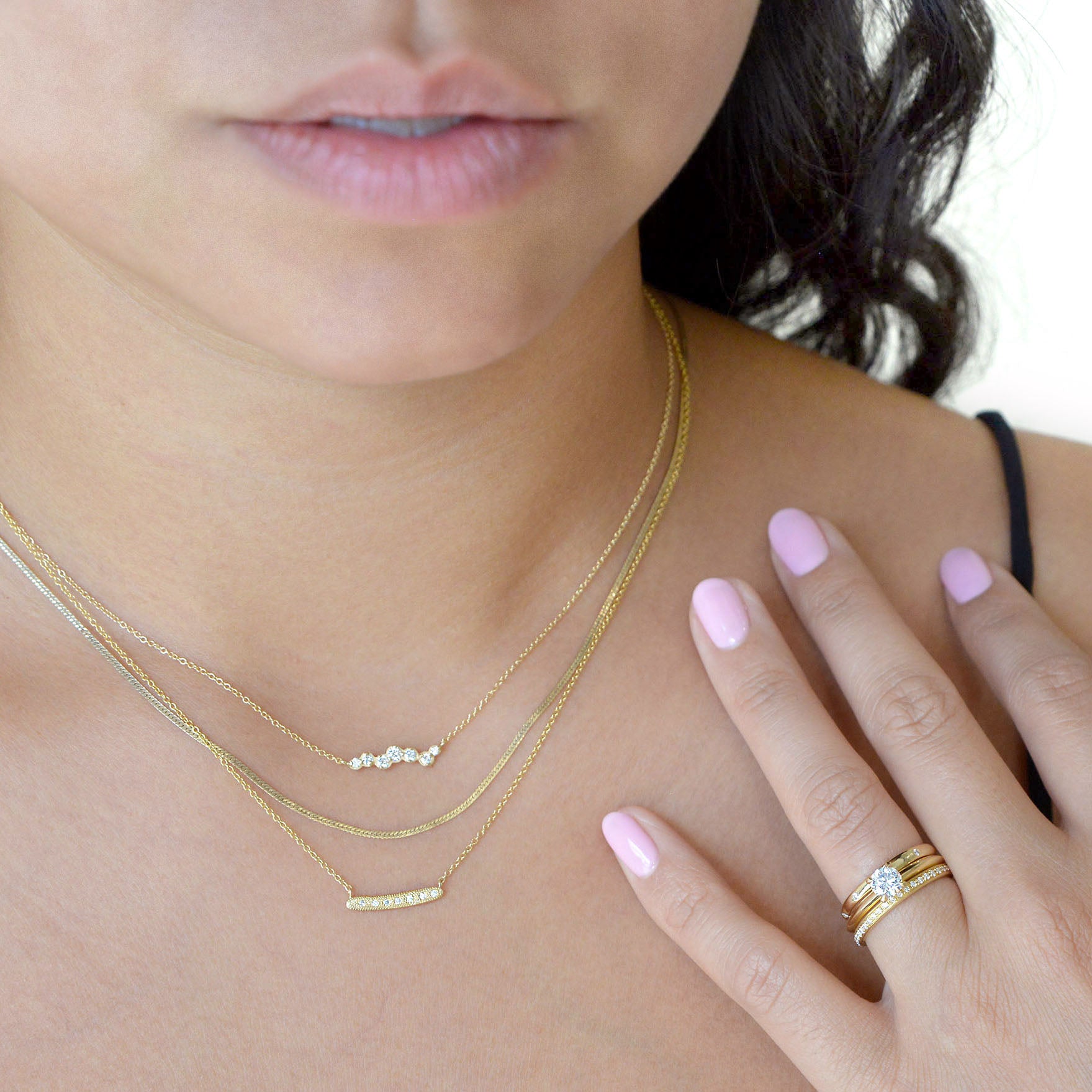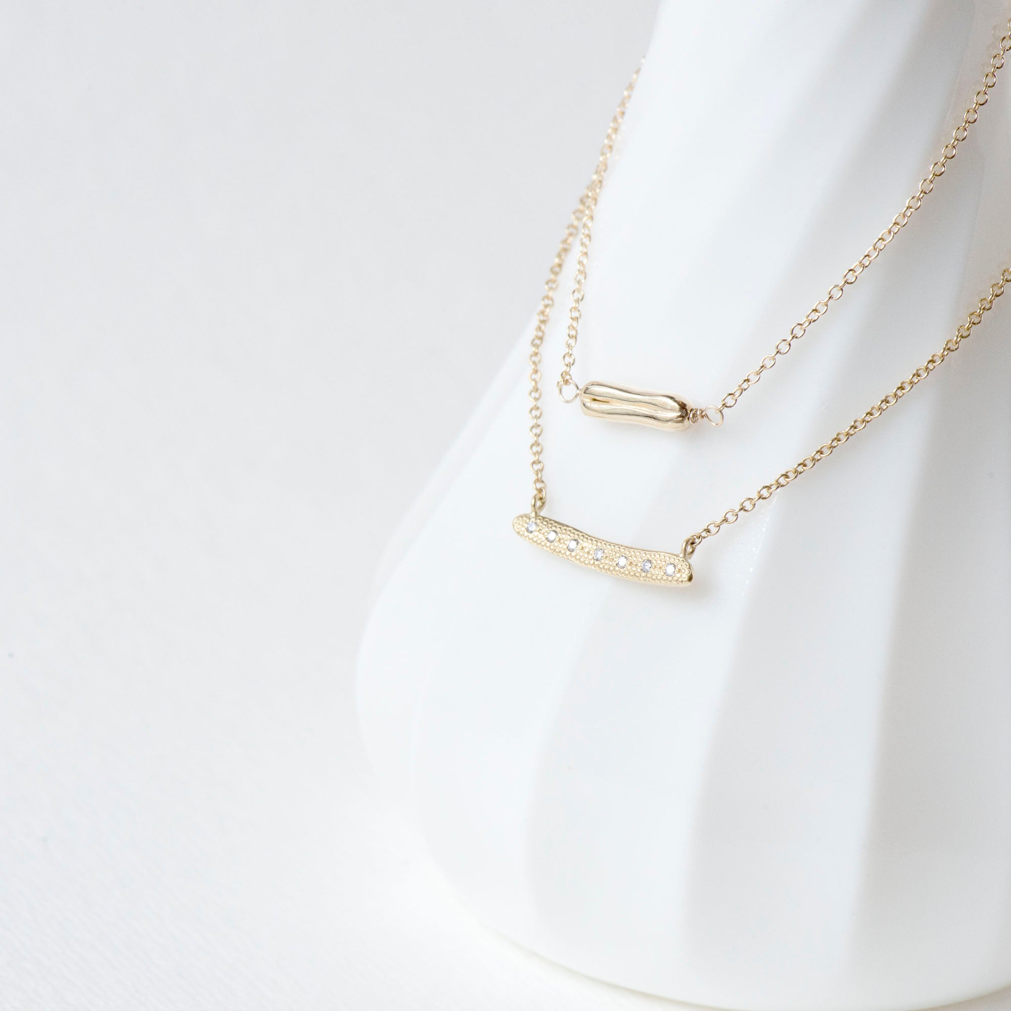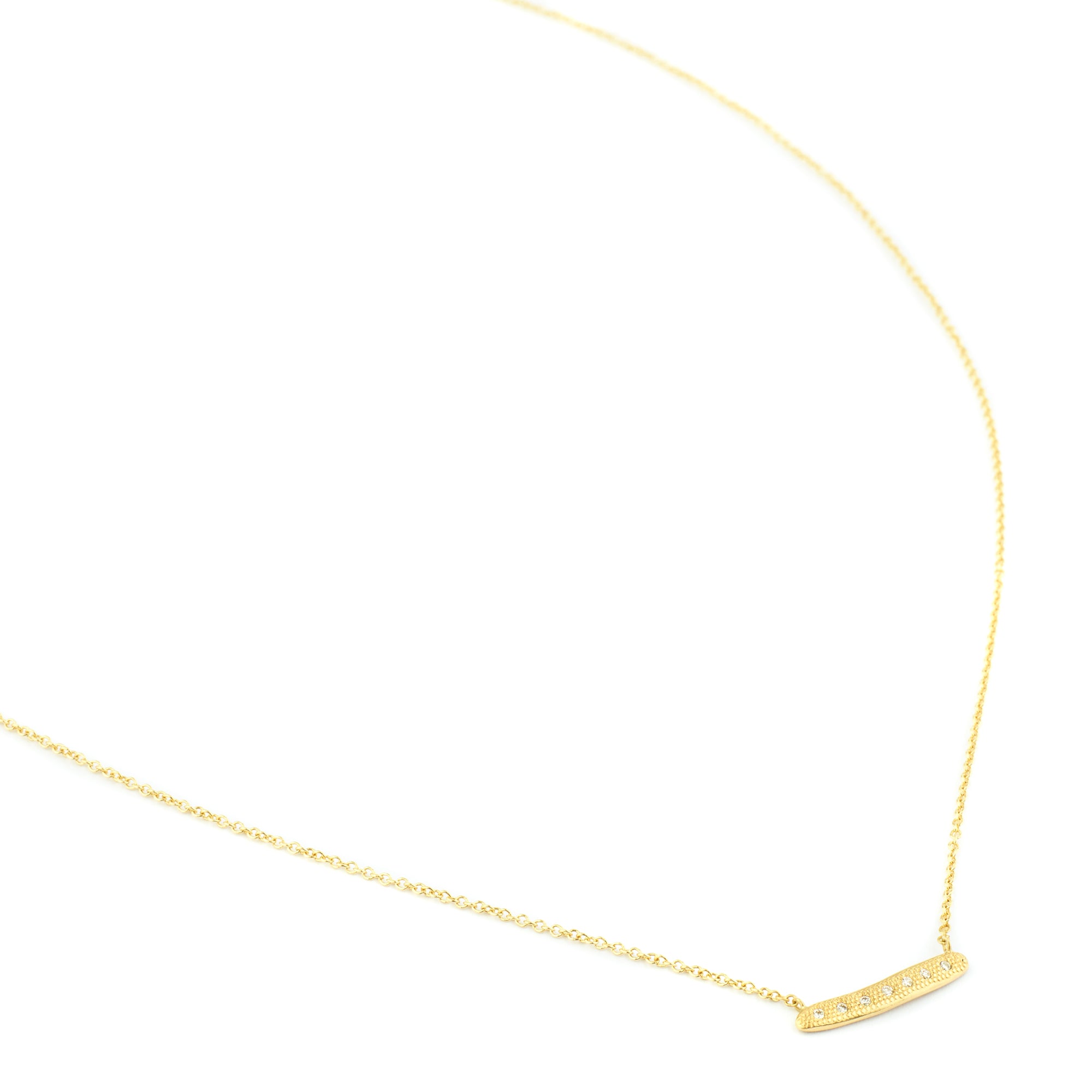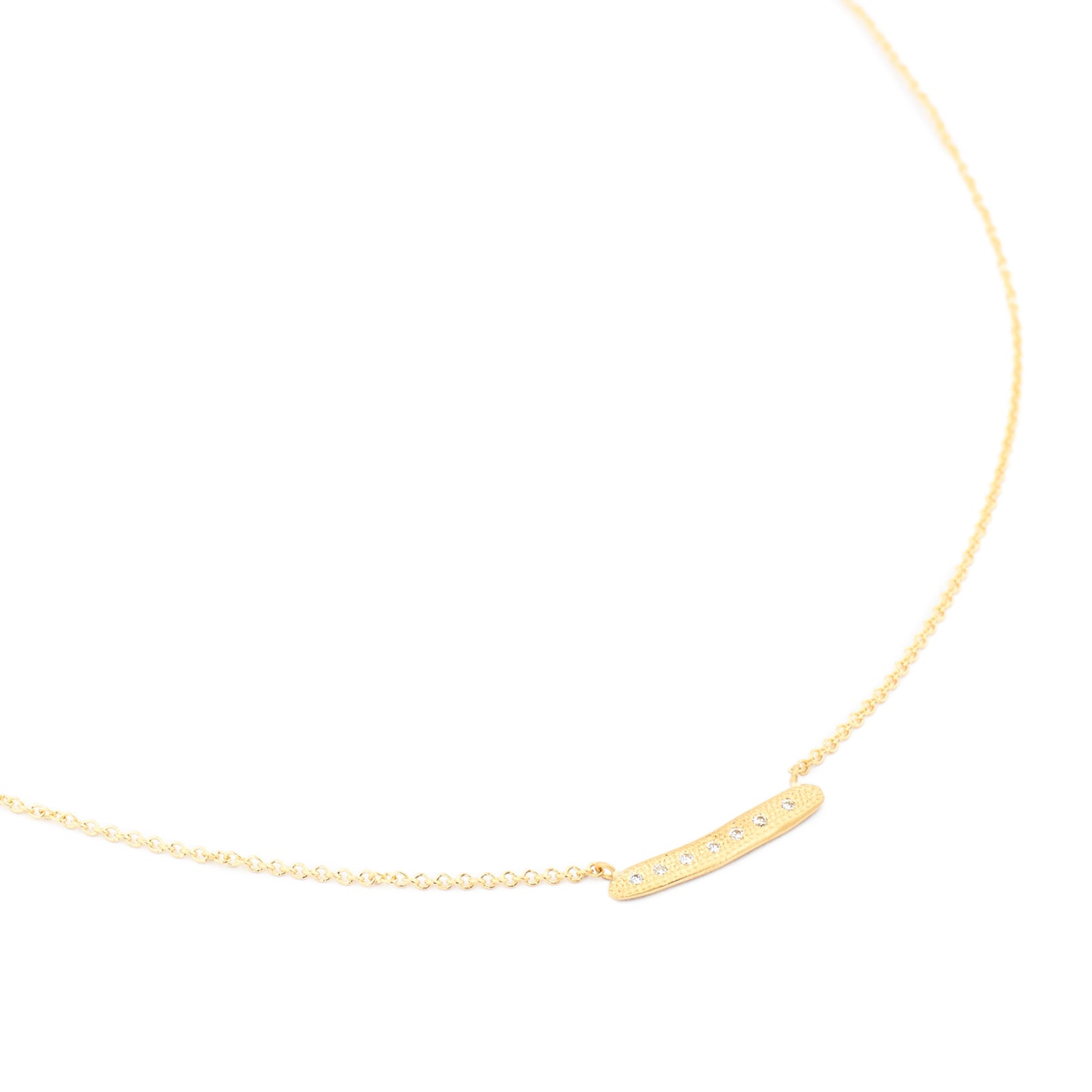 It's all in the details. A subtle stardust textured necklace crafted in your choice of 14k white or 18k yellow gold and finished with delicate diamond details.