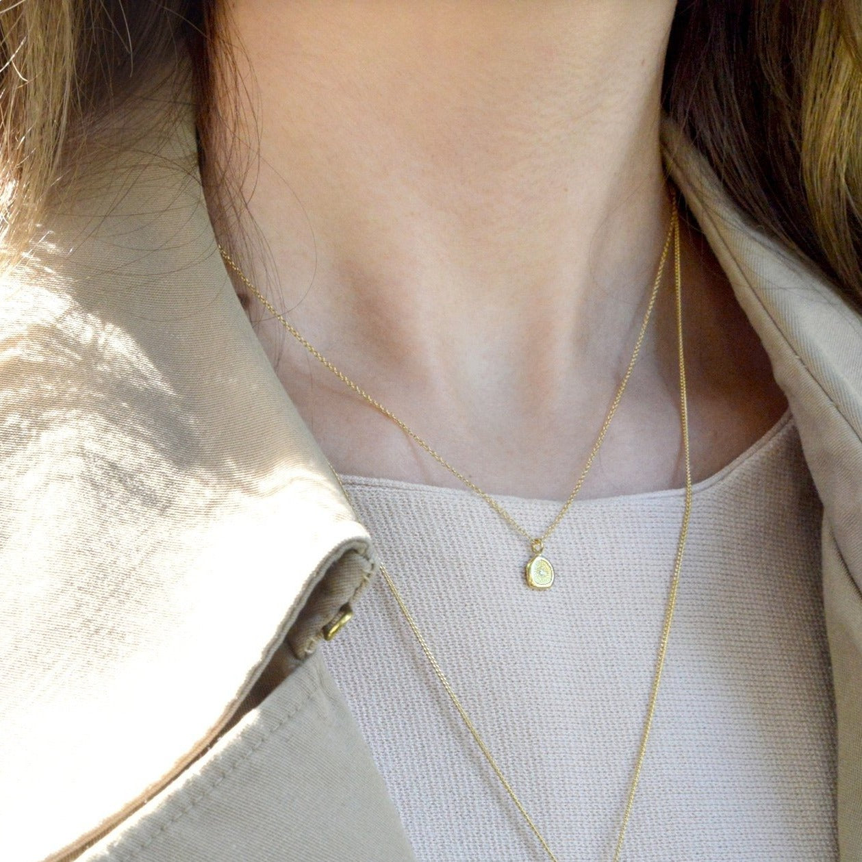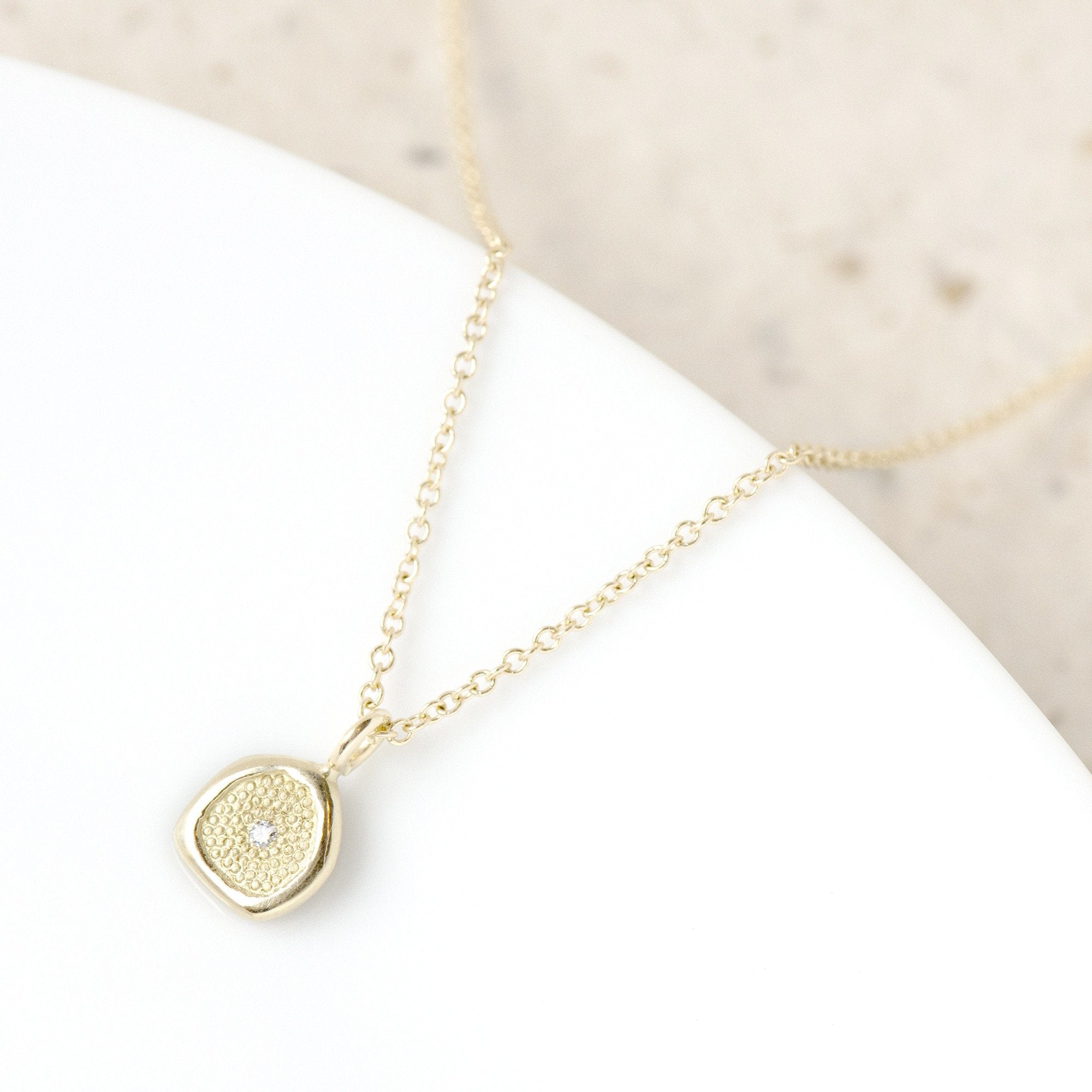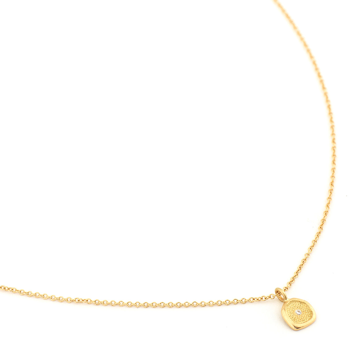 'Stardust' gold necklace with mini organic pebble charm set with 1 x 0.01ct G/VS diamond, on 16-18" extendable fine cable chain.