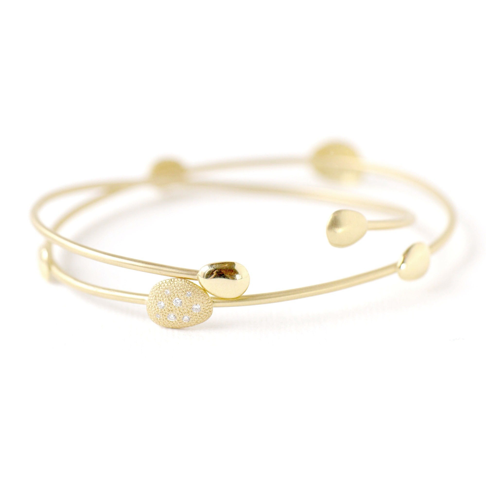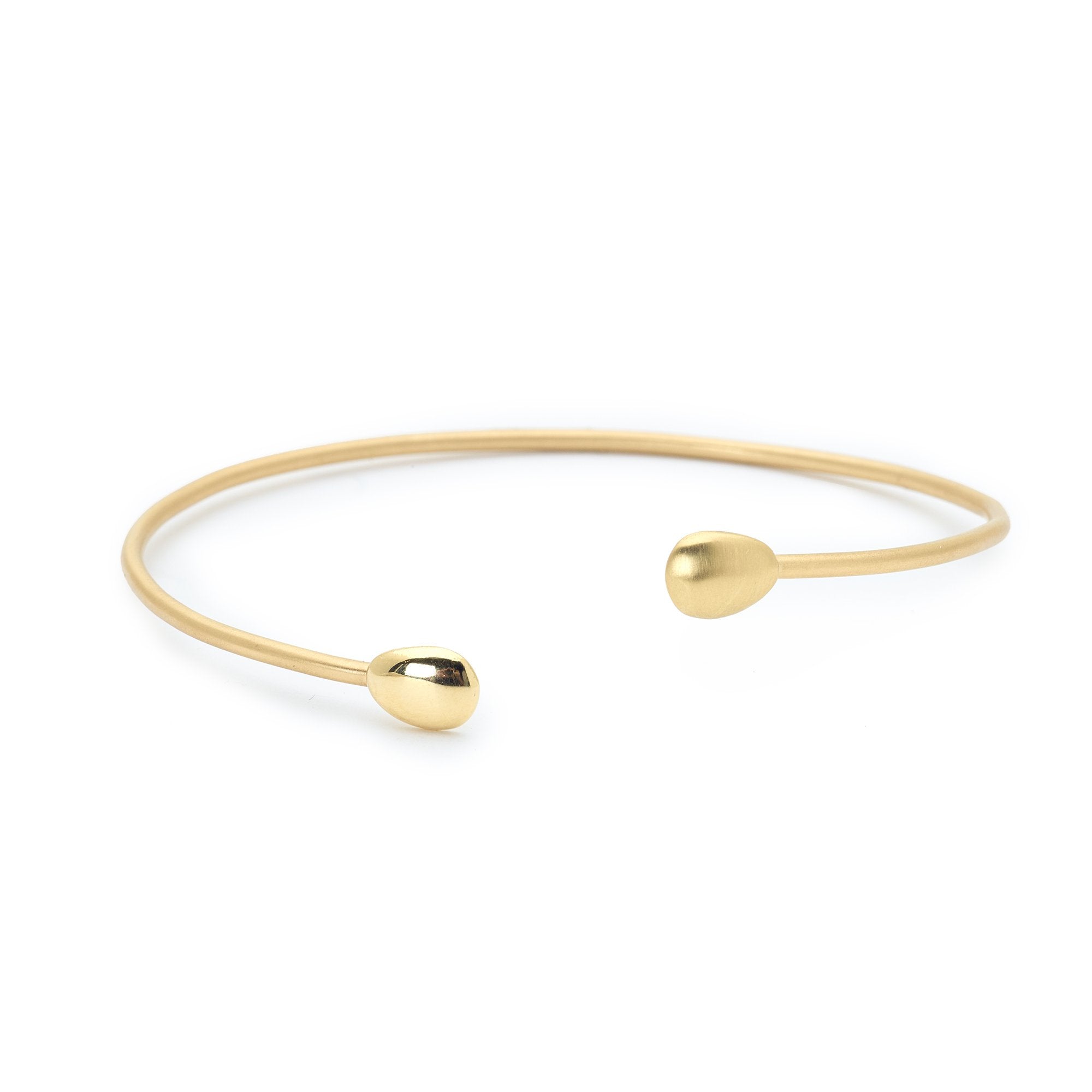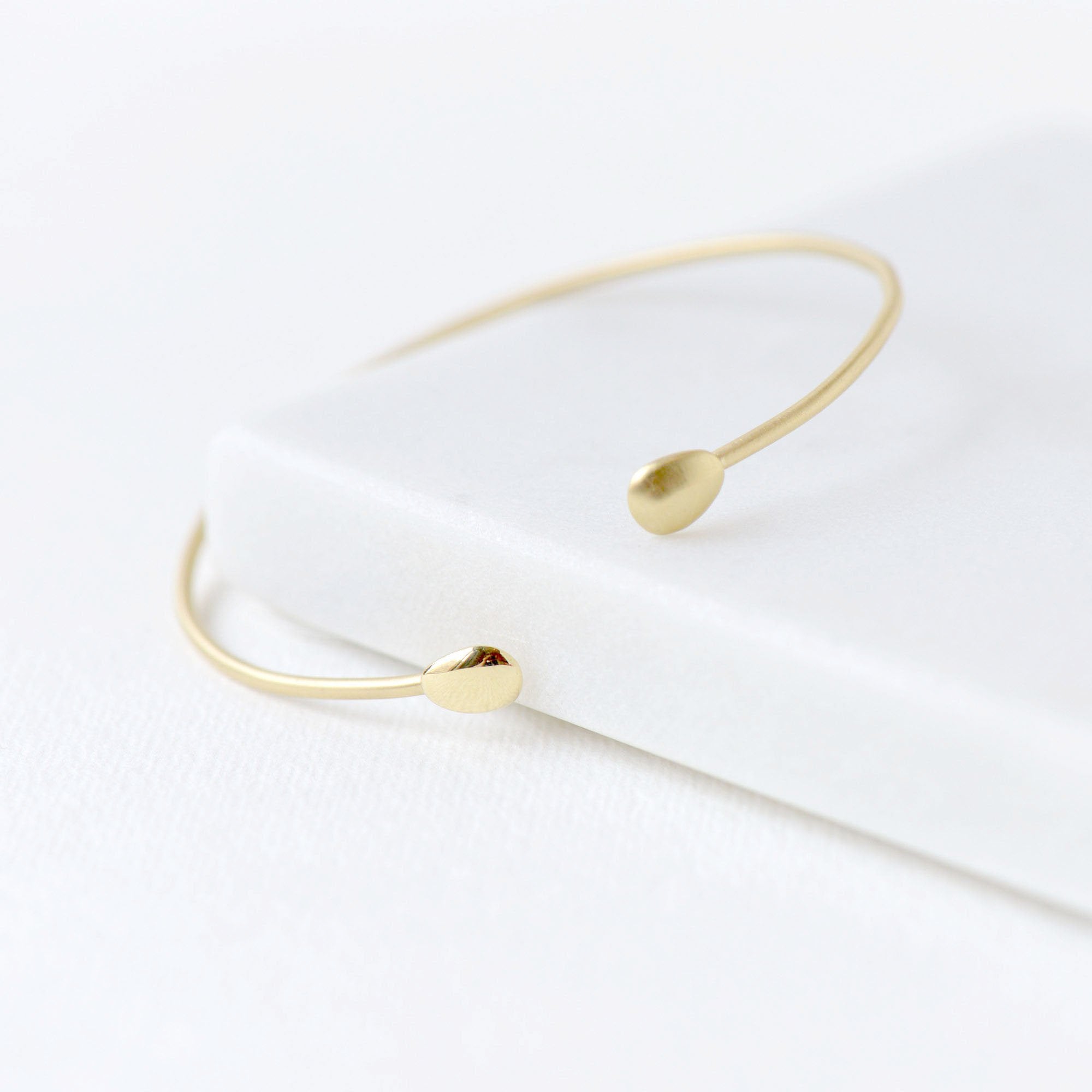 Treat yourself to the 'Petal' collections sweet and simple gold open bangle with one matte and one polished organic petal on each end.