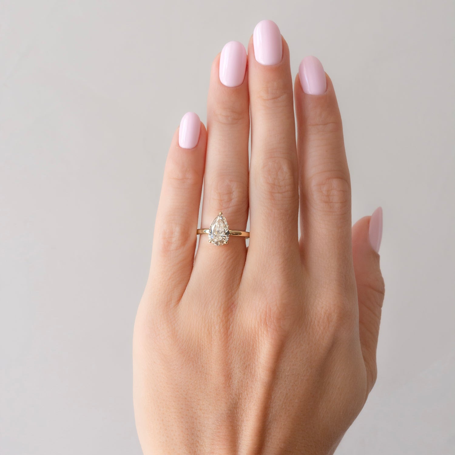 This pale champagne pear diamond dazzles in our 'Alex' setting