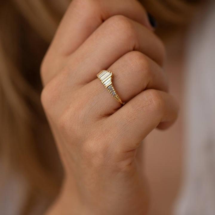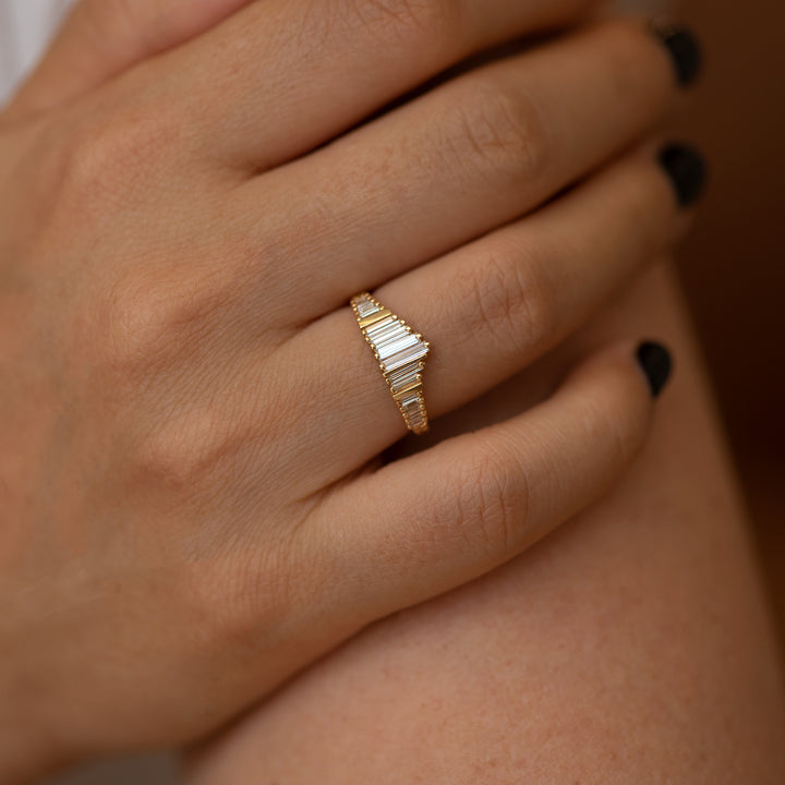 • 18k solid gold | Assemblage of gradient in size baguette-cut diamonds