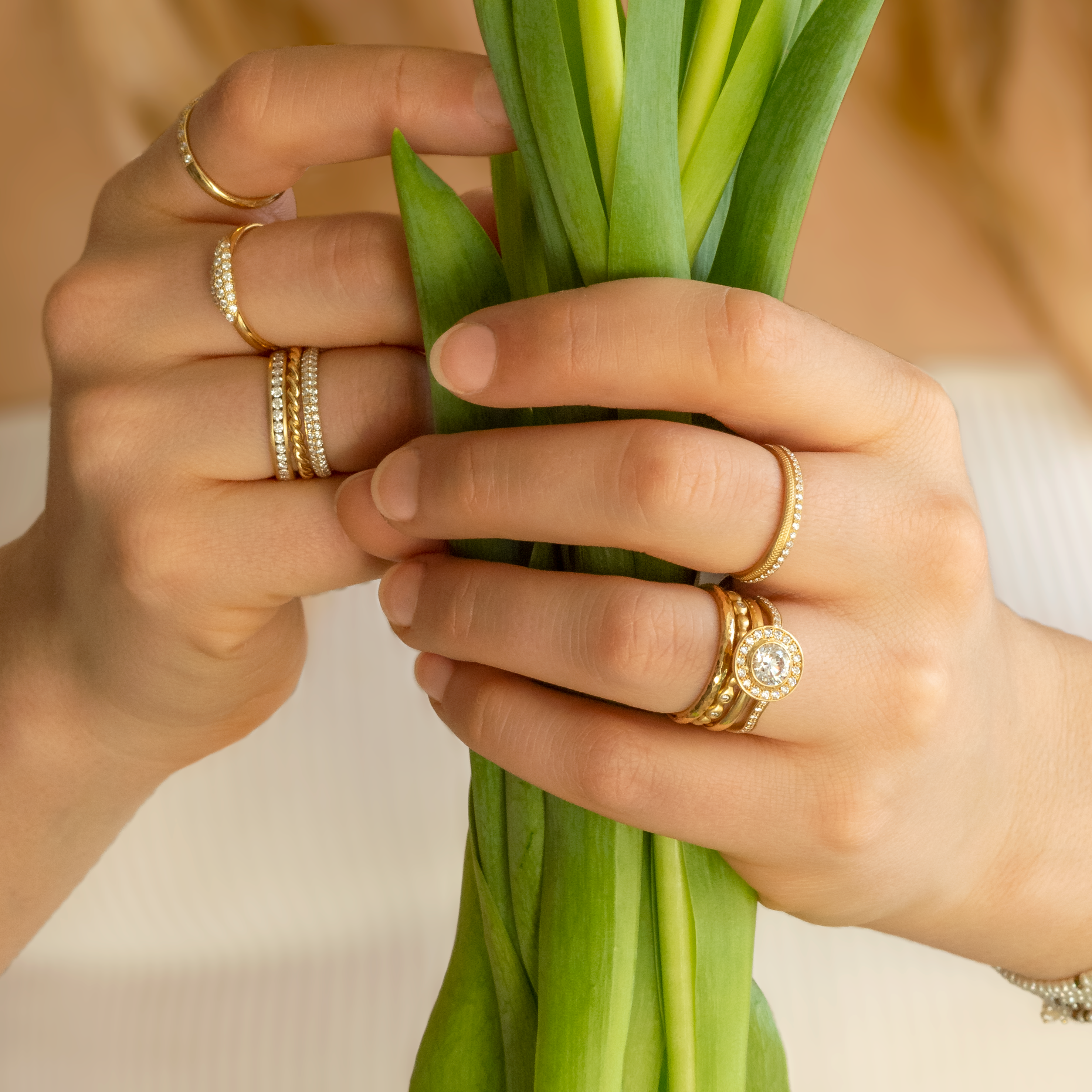 • Halo Diamonds: 17 x 0.005ct round brilliant cut