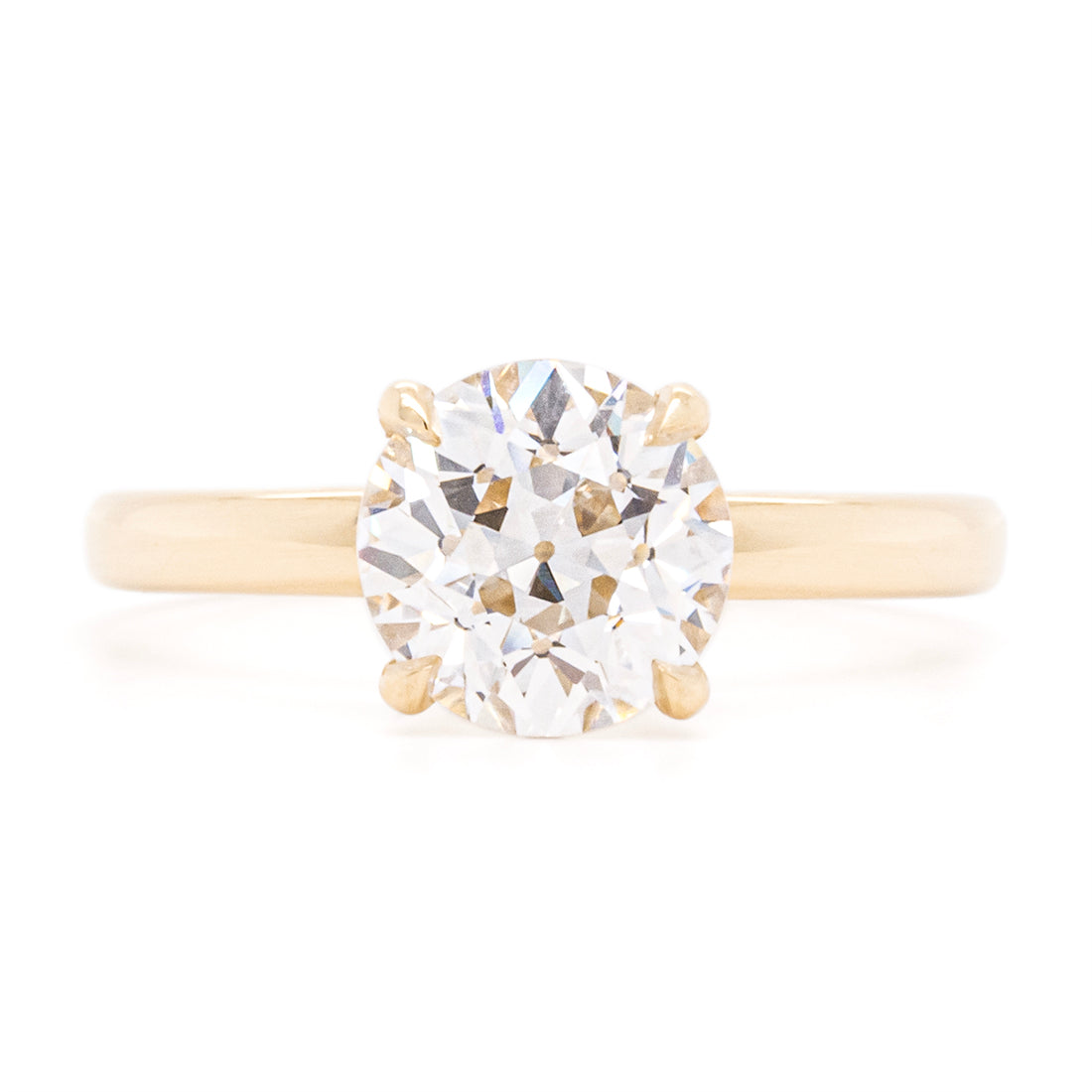 Slightly warm and stunning 1.54ct Old Euro Vintage Round Solitaire set in our classic 'Annie' setting