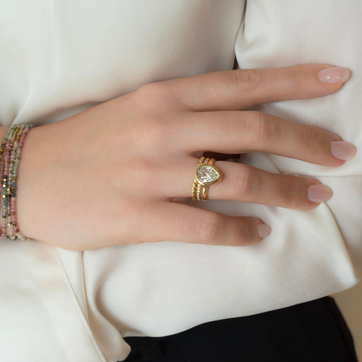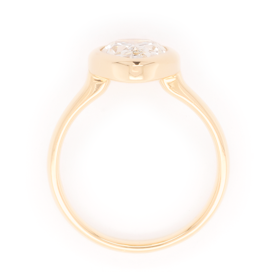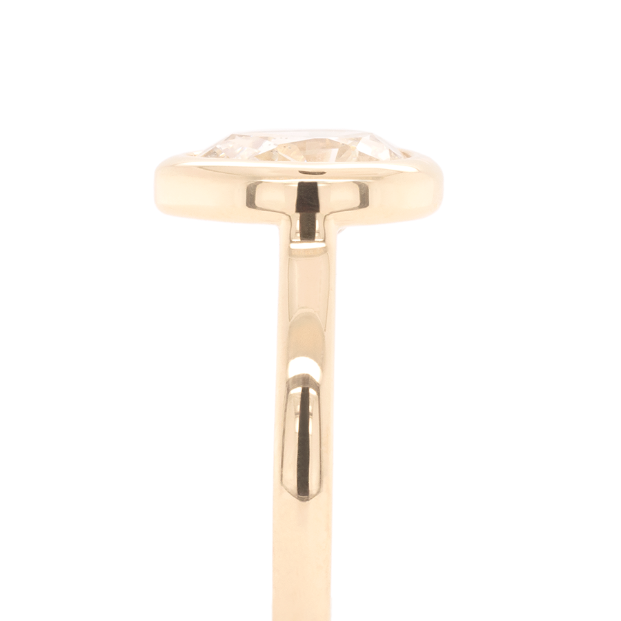 A One of a Kind stunner! The Subtle warmth in this incredible Old Mine Vintage Pear Diamond draws you in like no other. The solid 18k yellow gold high polish bezel setting lets the diamond do all the talking.