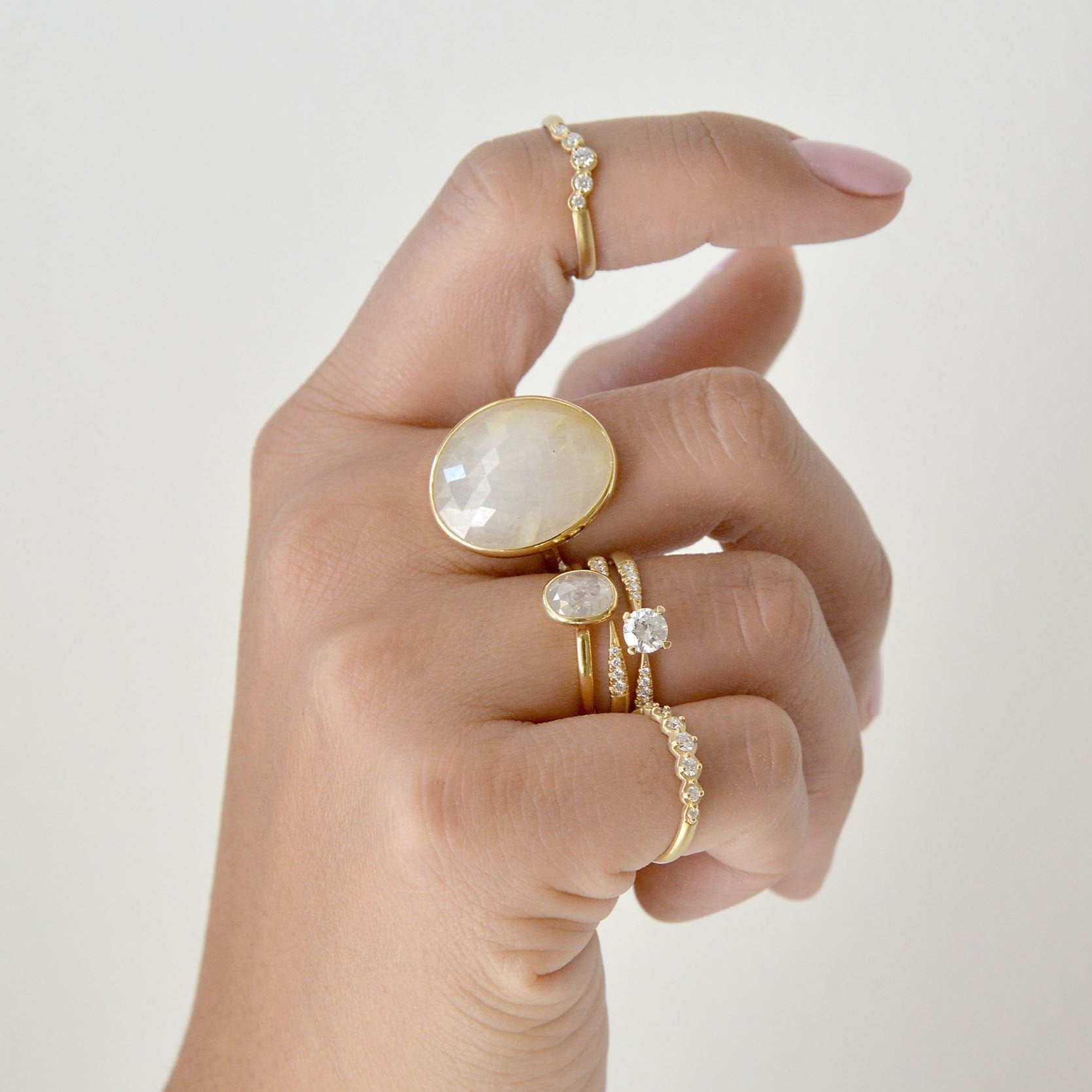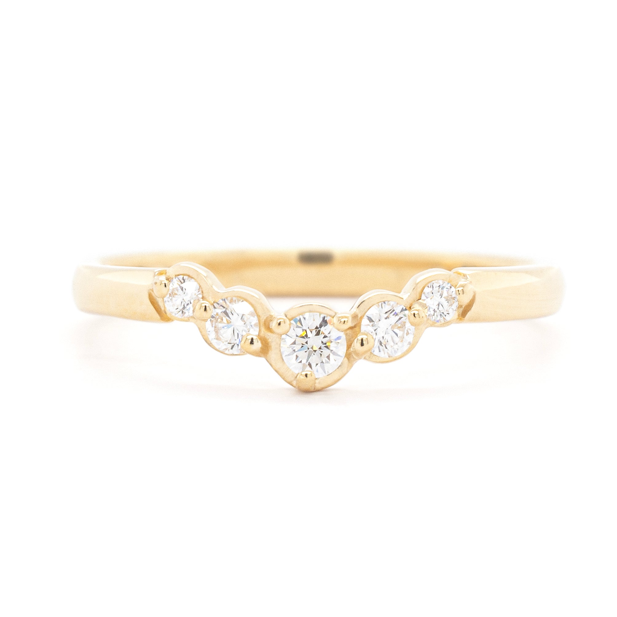 Gold 'Festival' graduated diamond jacket ring with varying sizes of round brilliant cut G/VS diamonds: ~0.14 total carat weight.