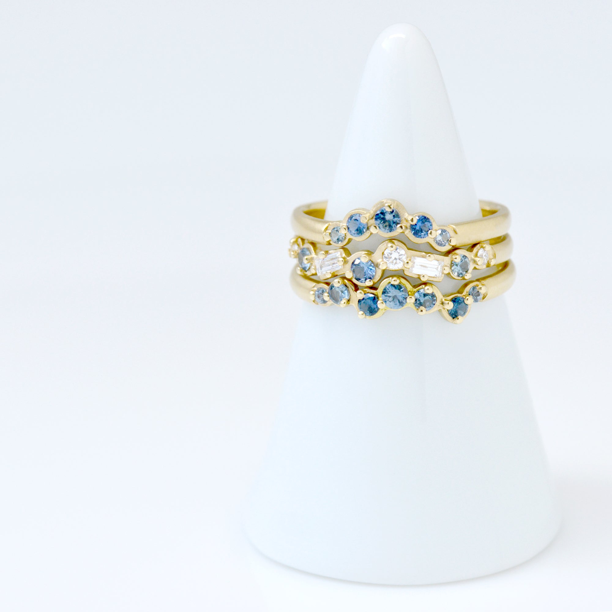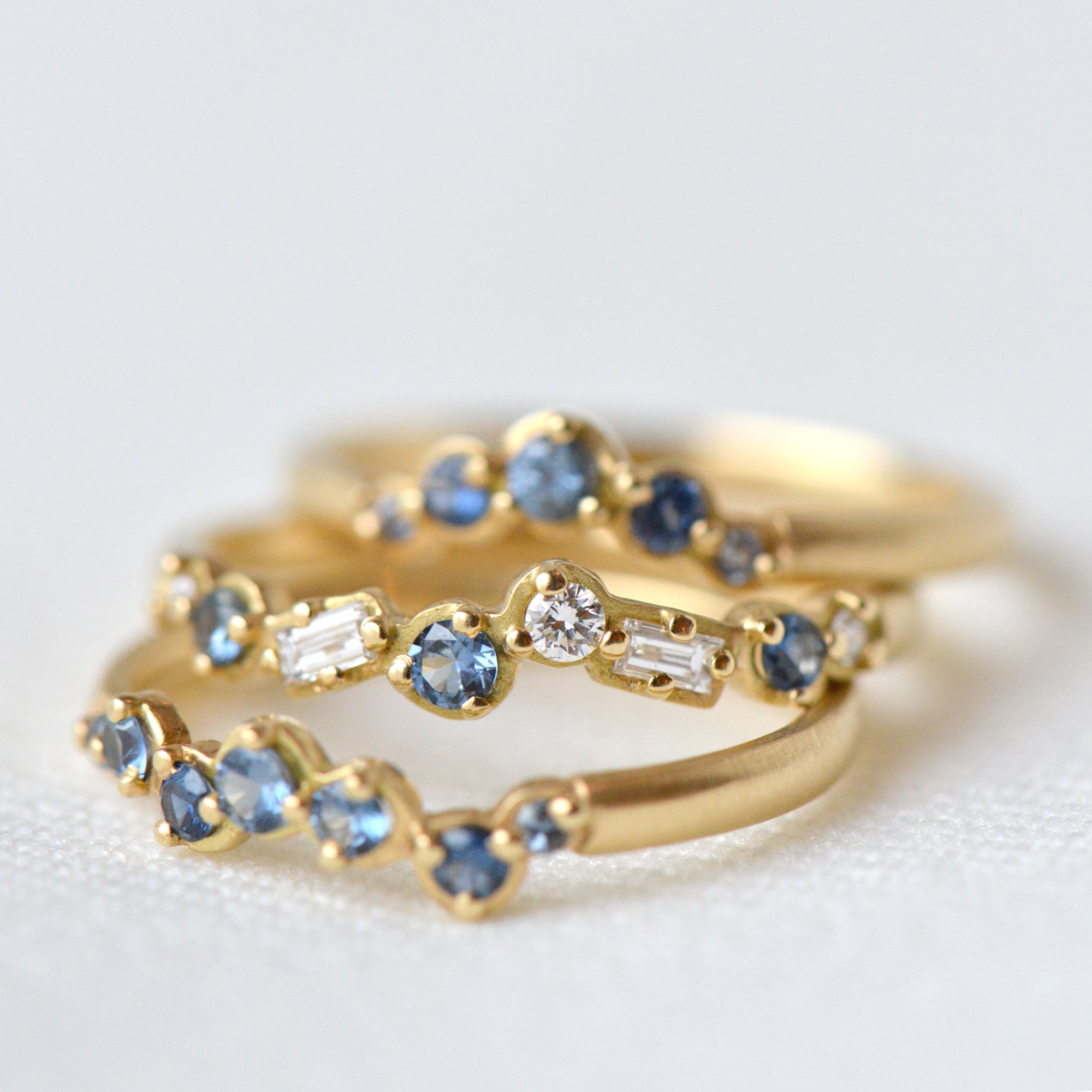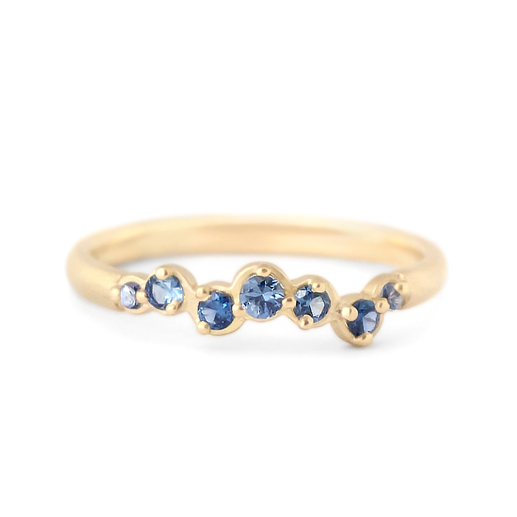 Celebrate sweetly with this gold 'Festival Collection' cascade band with varying sizes of round multi-blue sapphires, band ~2mm wide.
