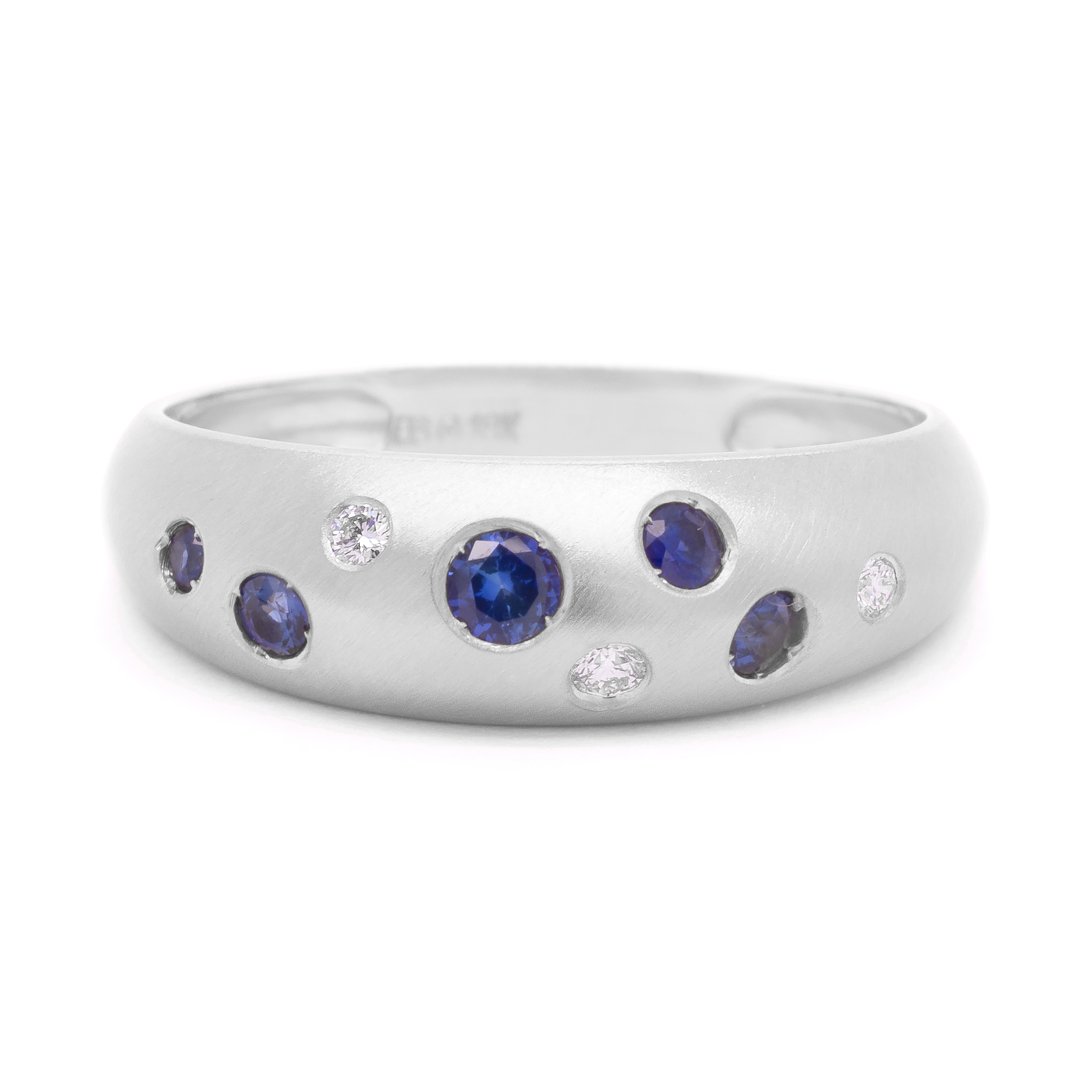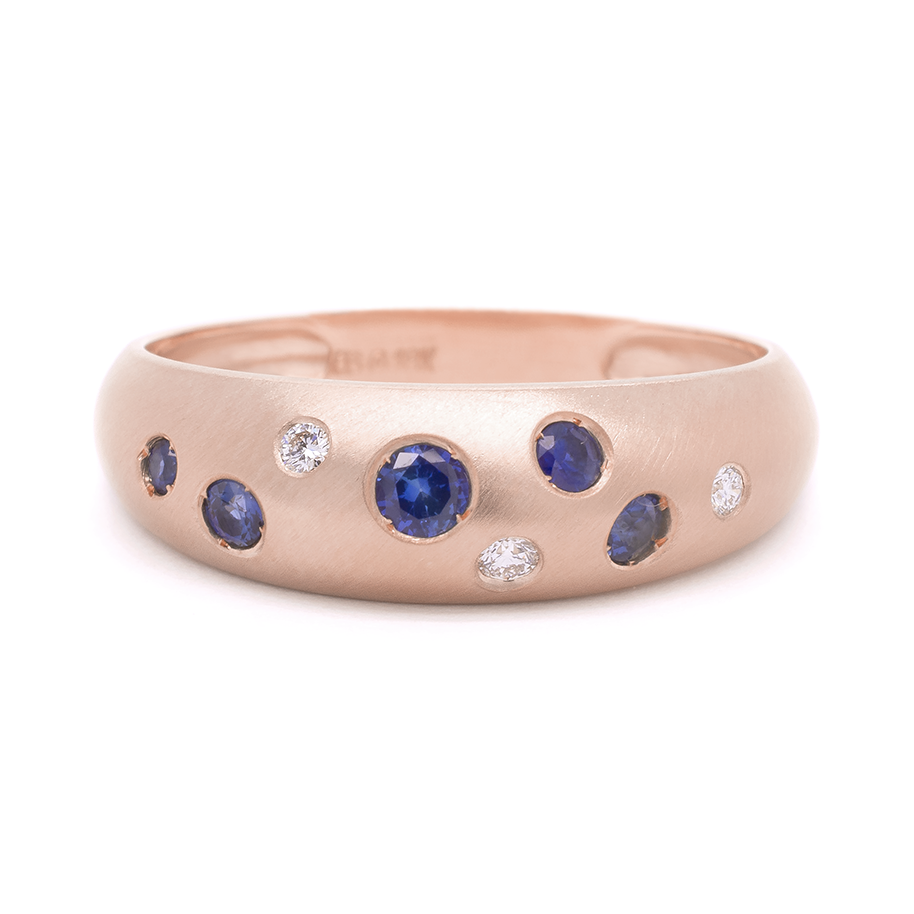 Elevate your everyday look with our soft Bombe 'Luna' seafoam ring, An elegant combination of blue sapphires and diamonds.