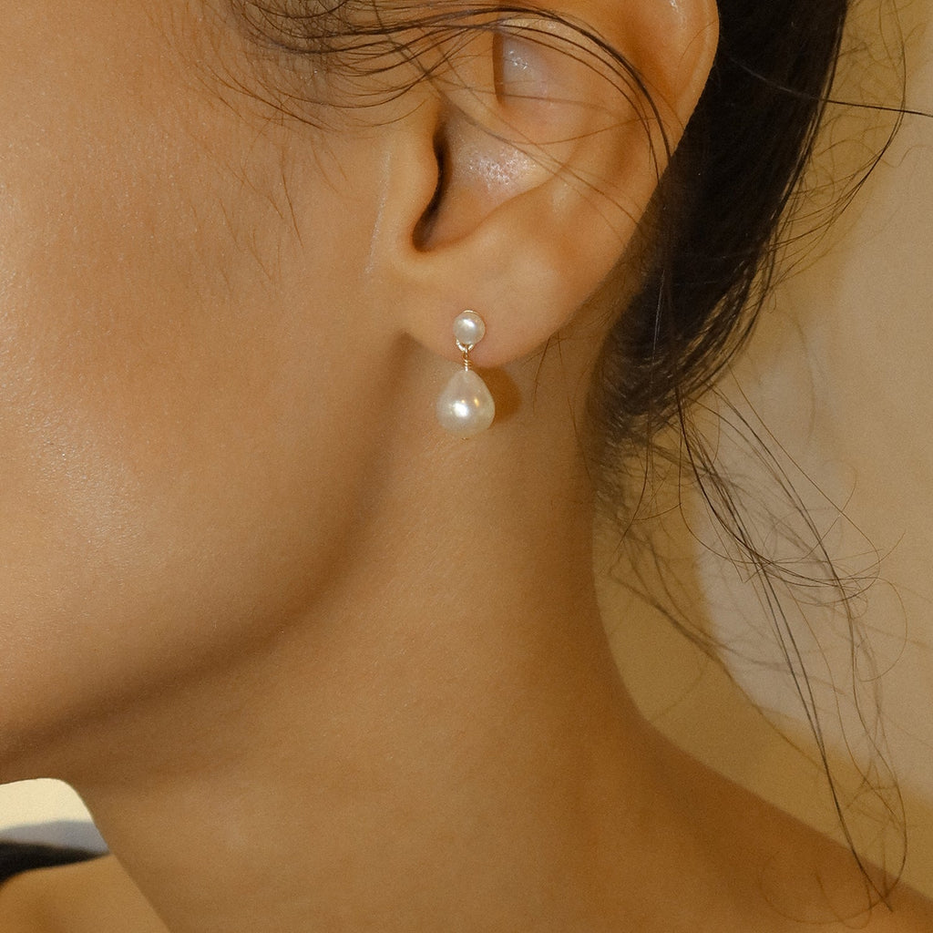 The Baroque Petite Drop earrings are dainty, yet still hold all the luminous powers. Made in Leah's Vancouver studio with 14k gold vermeil and freshwater pearls.
