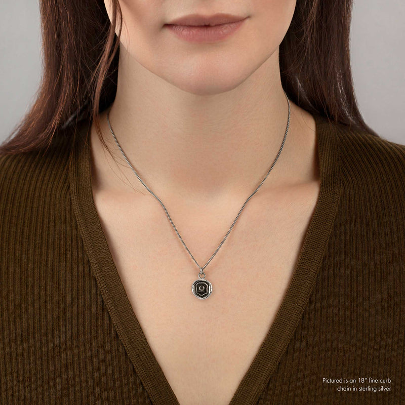 - 18" Oxidized Sterling silver chain and lobster clasp with Pyrrha branded quality tag