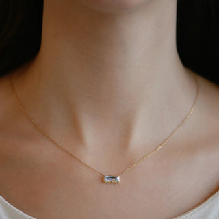 Blue Topaz Dew Drop Carré Marine Pendant Necklace