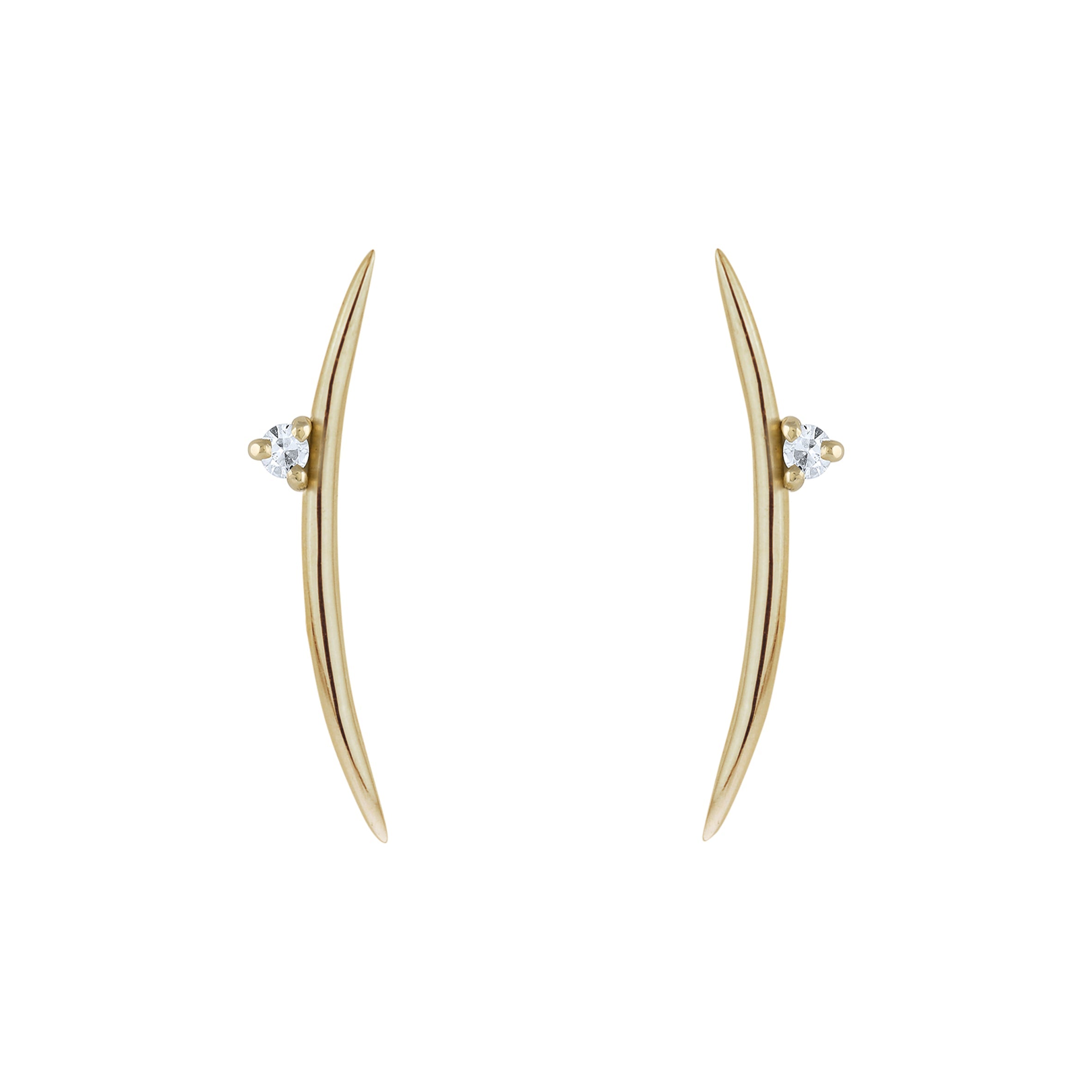 Bestselling Long Arc earrings get a diamond accented update. Delicately curved stud earring can be worn vertically to curve forward or horizontally along the earlobe.