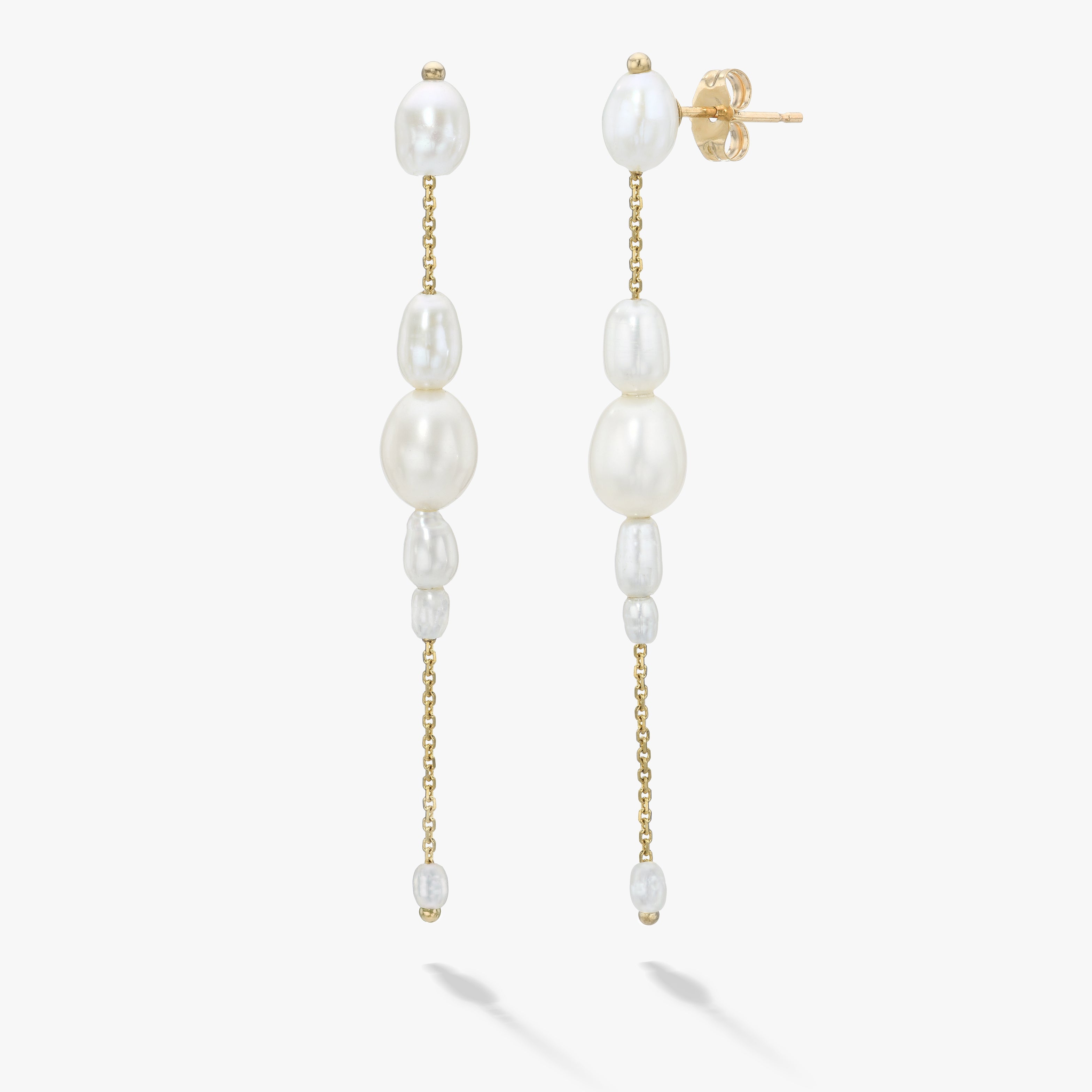 Prepare to turn heads. People will want to know where you found these delicate but bold, thoroughly romantic pearl drop earrings. Suspended from a solid 14KY chain, Palazzo's natural oval pearls move when you do with a satisfying swing that is so much fun to wear.