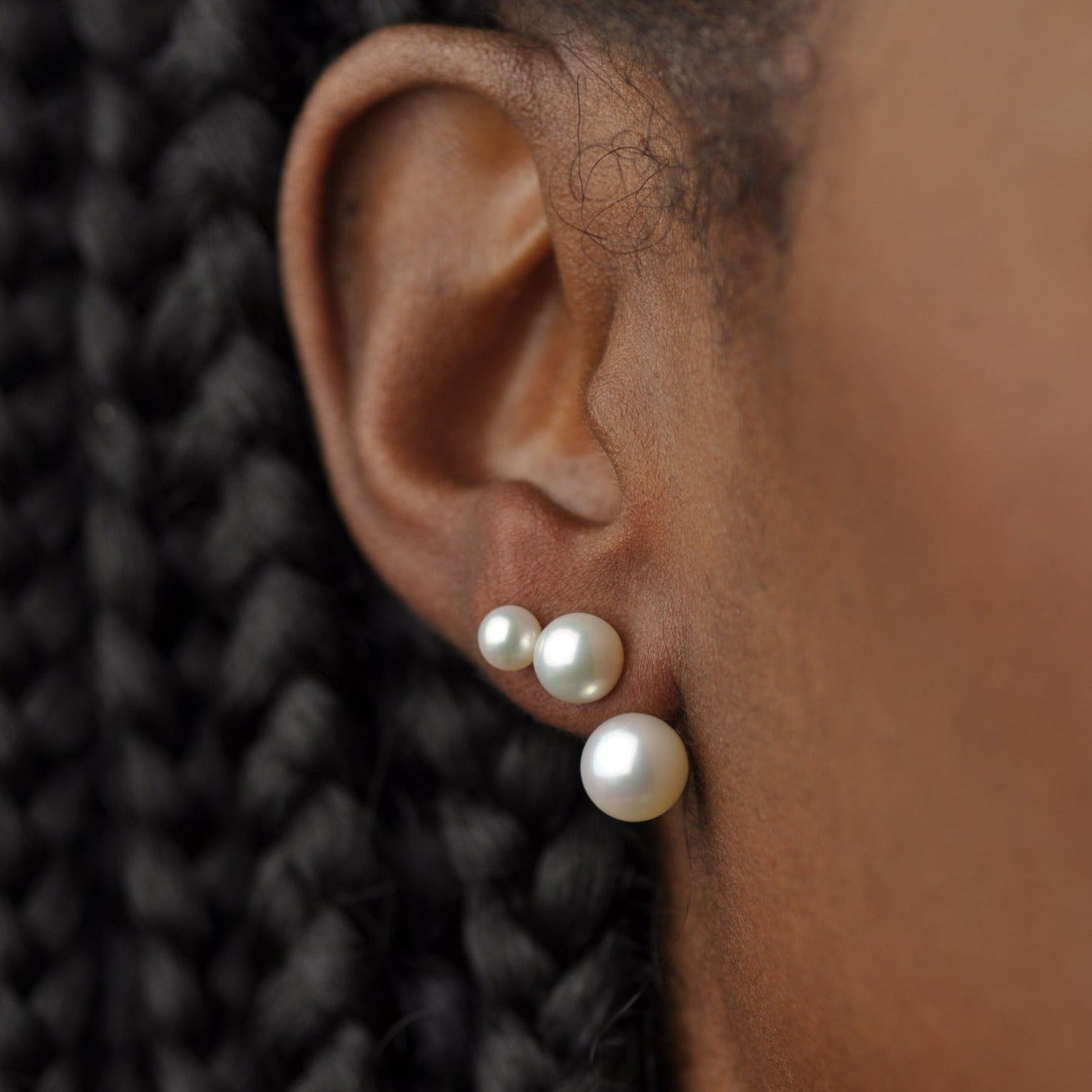 A decadent mix of our Pila Pearls and luscious round pearl ear jackets, this combination makes a bold and beautiful statement.
