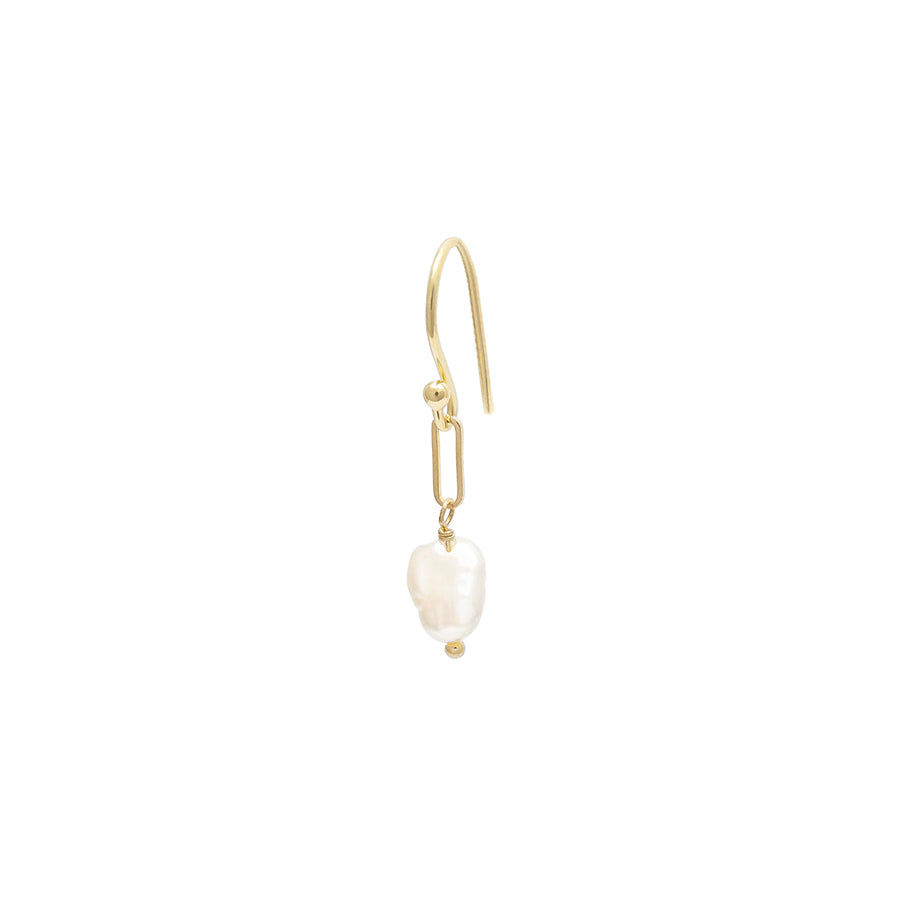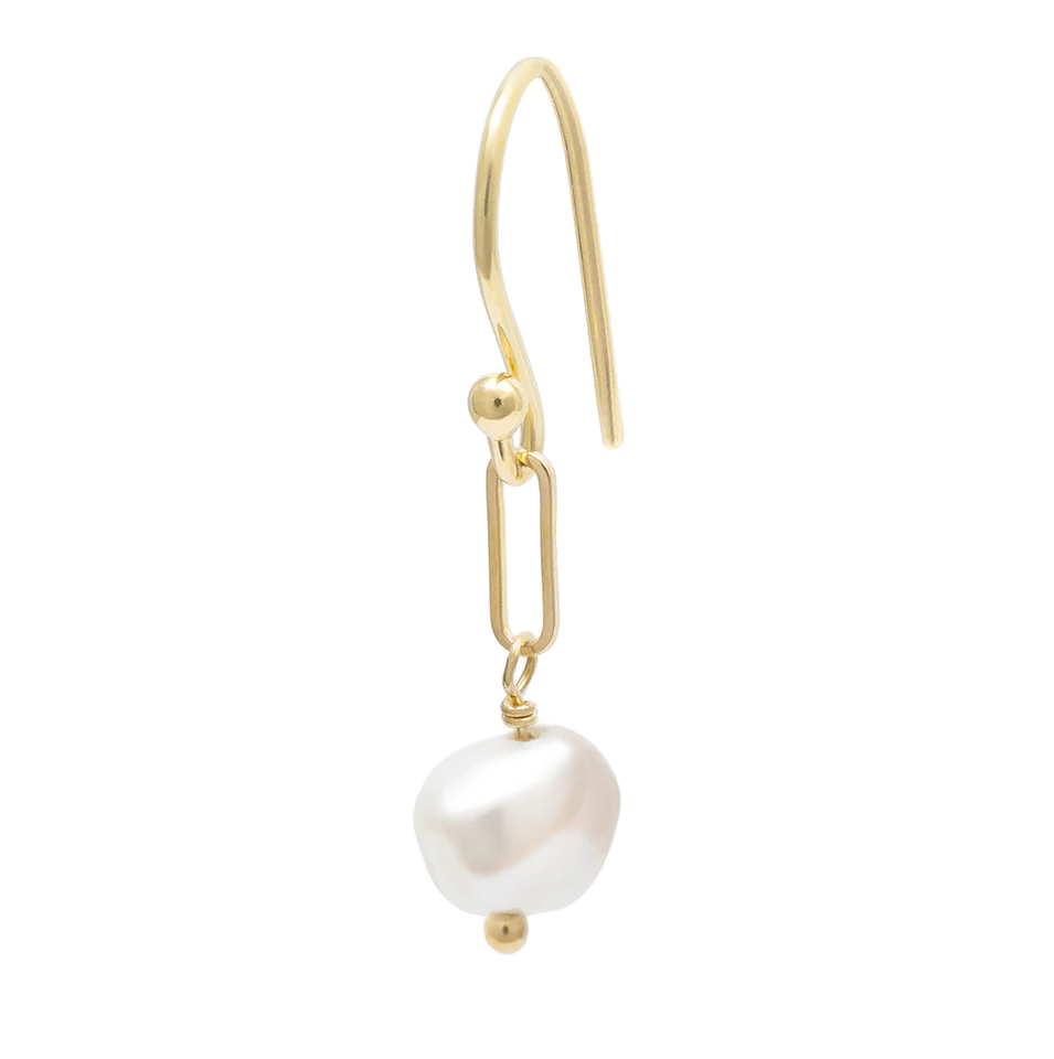 These sweet pearl nuggets dangle from a single gold paper clip link. Part of our 'Luna' collection.