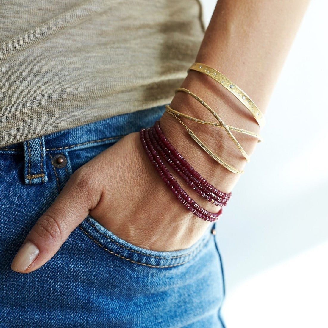 Proclaim your original sense of style with a unique gemstone bracelet from Anne Sportun's coveted Wrap Collection. This wrap bracelet with gold clasp, hex bead, and tied extension comes in your choice of many gemstone options. Artfully made with hand craftsmanship and luxurious texture, this piece is the perfect addition to your everyday stack.