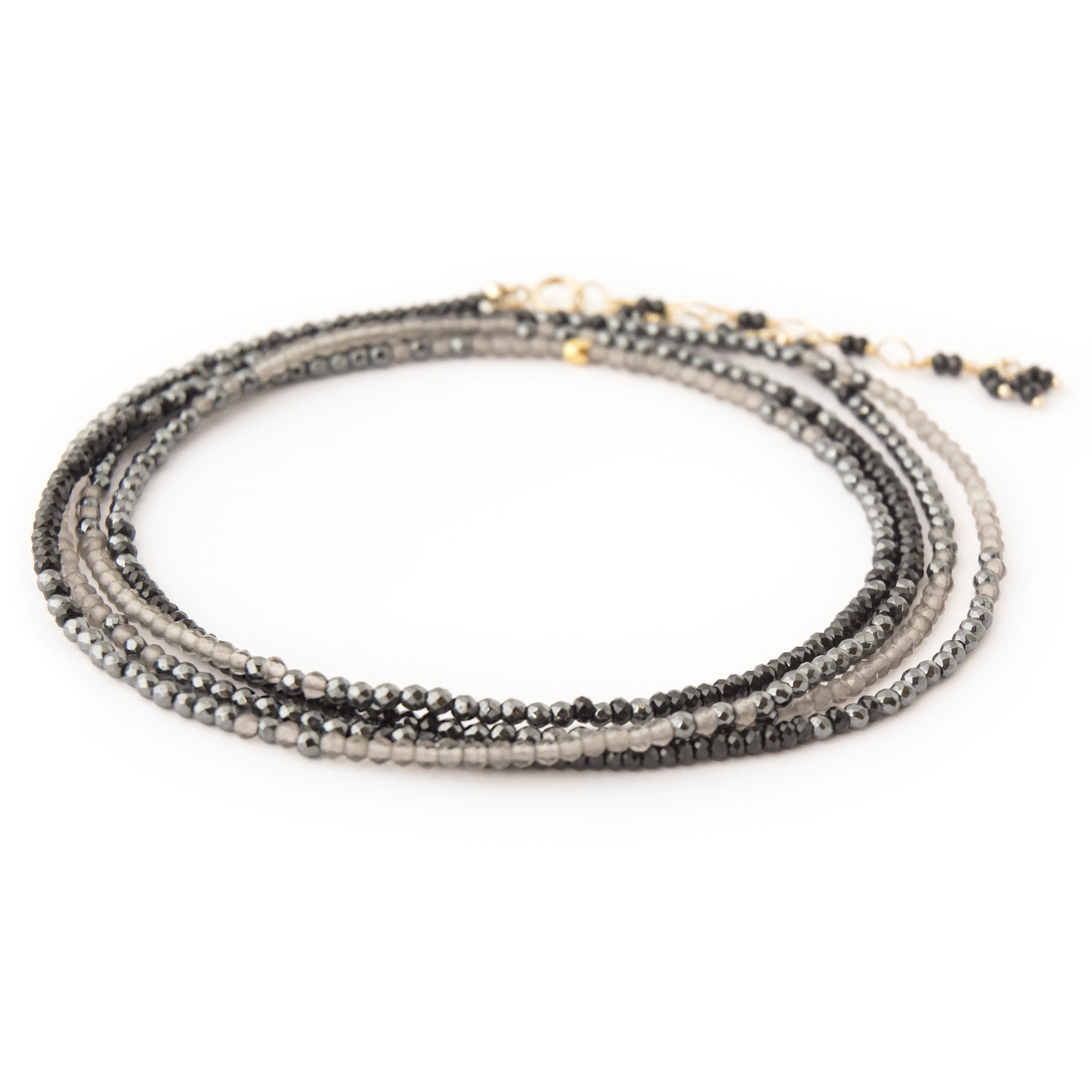 Choose your favourite of the beautiful gemstone combinations in our ombre wrap bracelet with gold hex bead, clasp and tied extension.