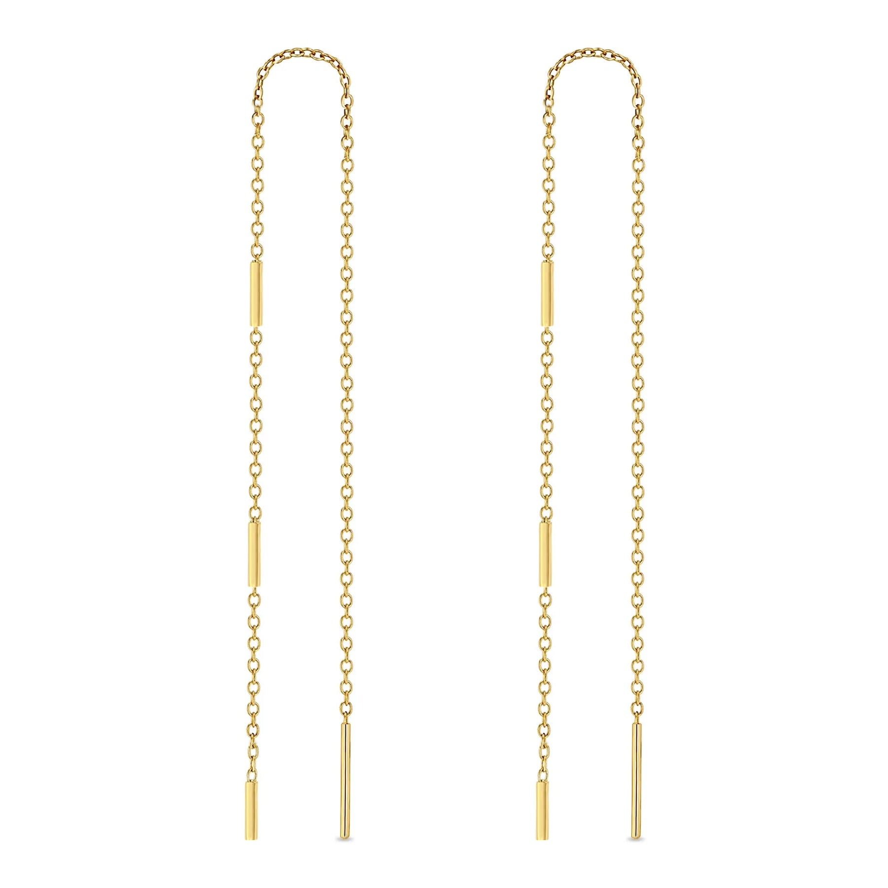 14k gold wire and cable chain threader earrings with 3 interspersed long bars.
