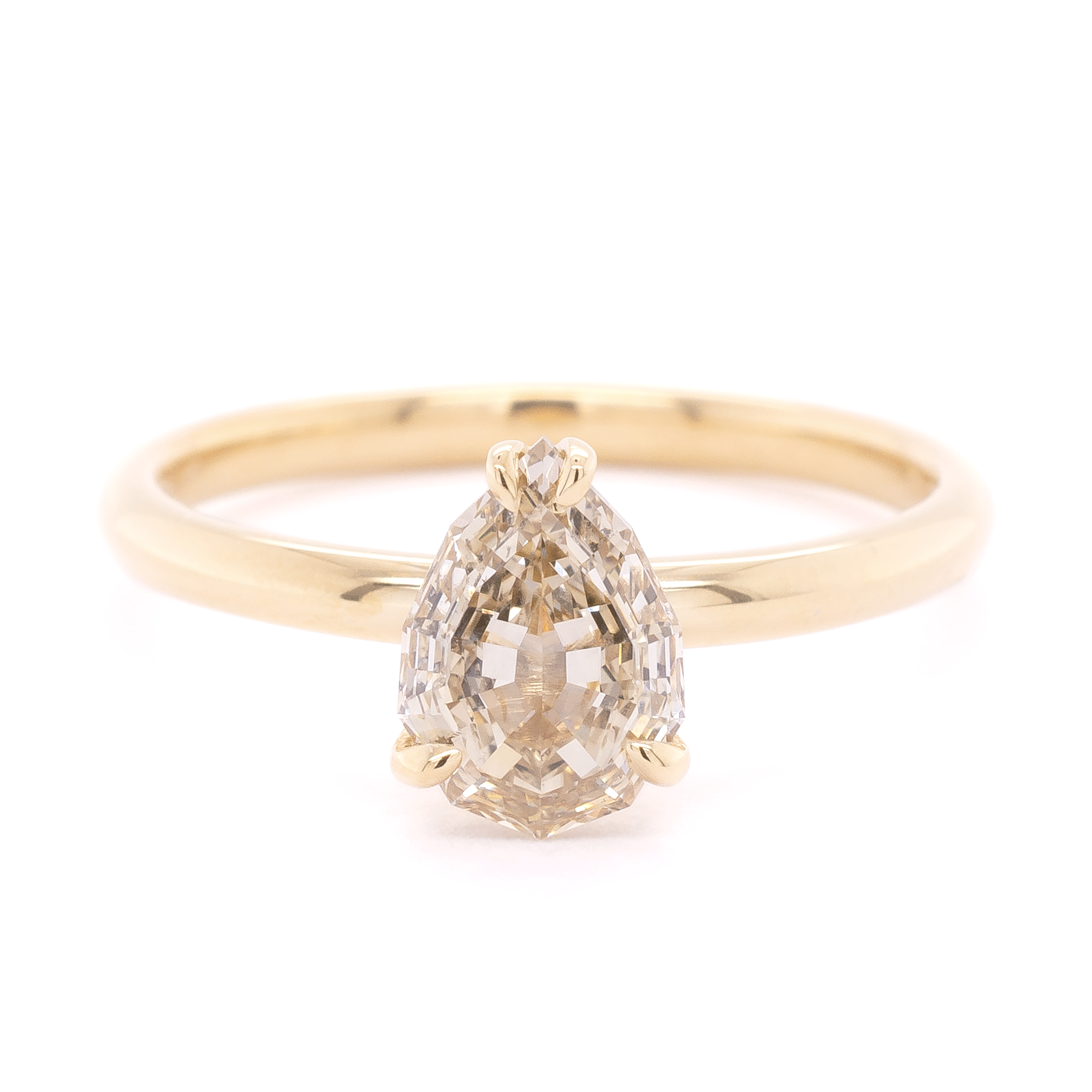 Each one-of-a-kind ring is as unique as its wearer, And this stunning champagne diamond was so special Anne knew she had to let it shine as the center of this ring.