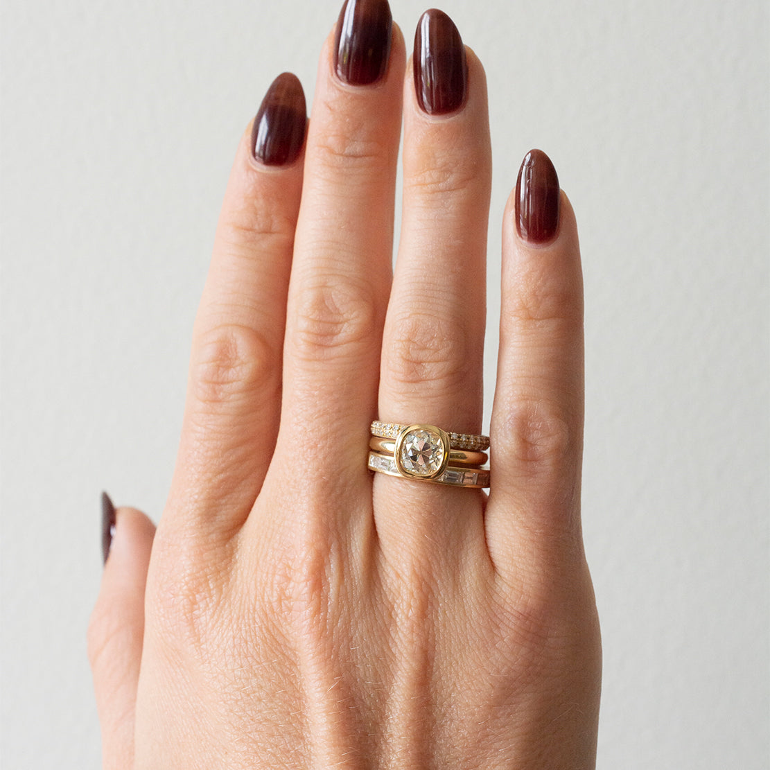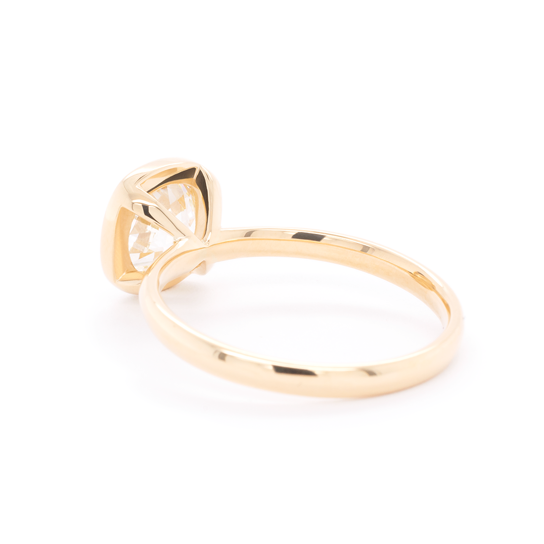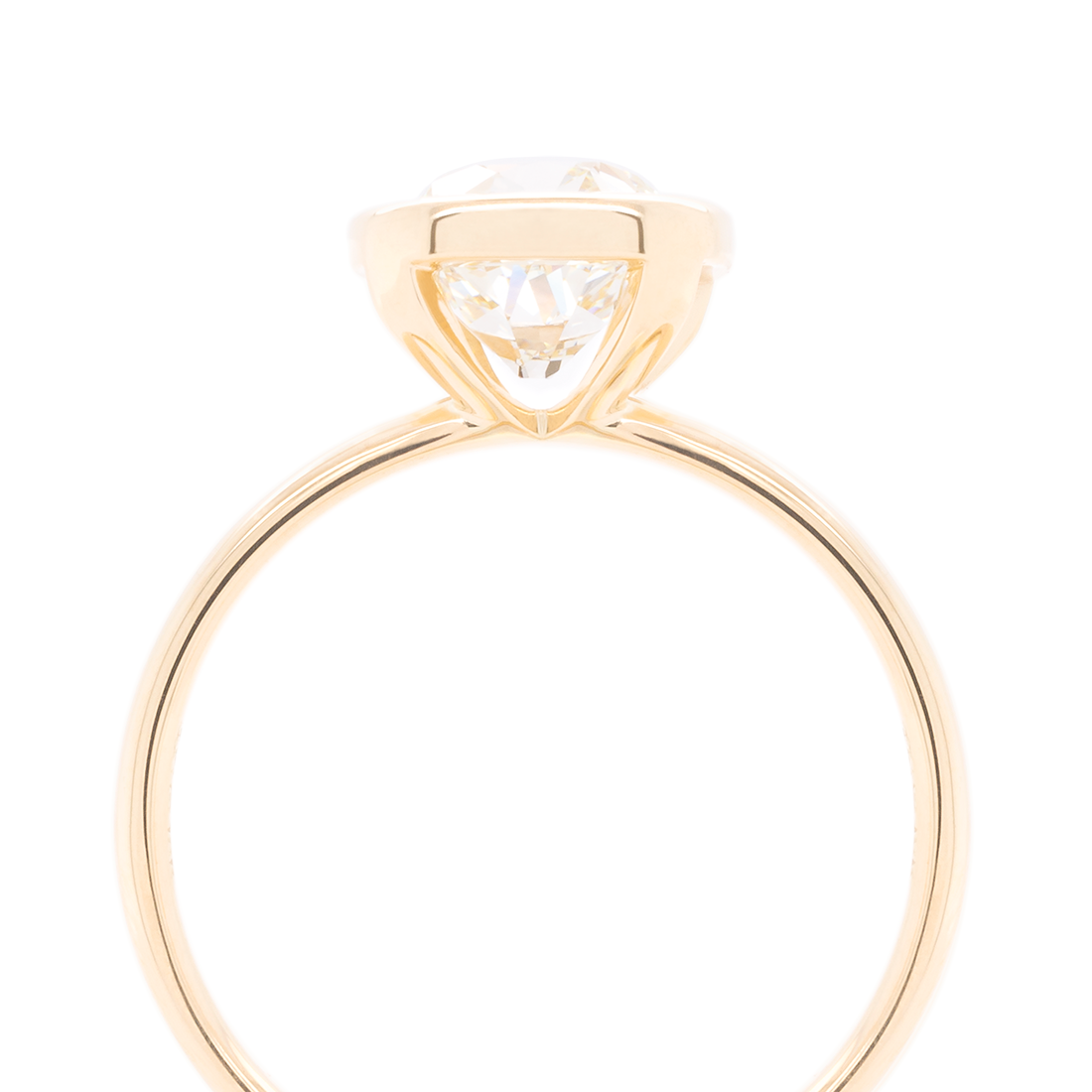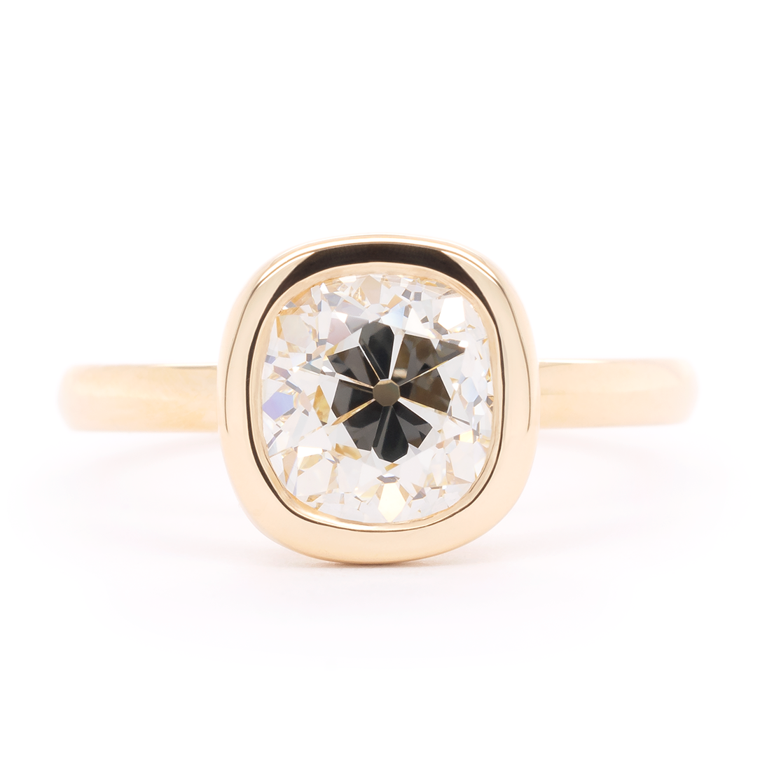 We love the unique sparkle and shape of Vintage Old Mine Diamonds and knew this one would be perfect in our "Anne" bezel basket setting.