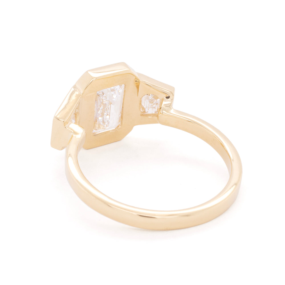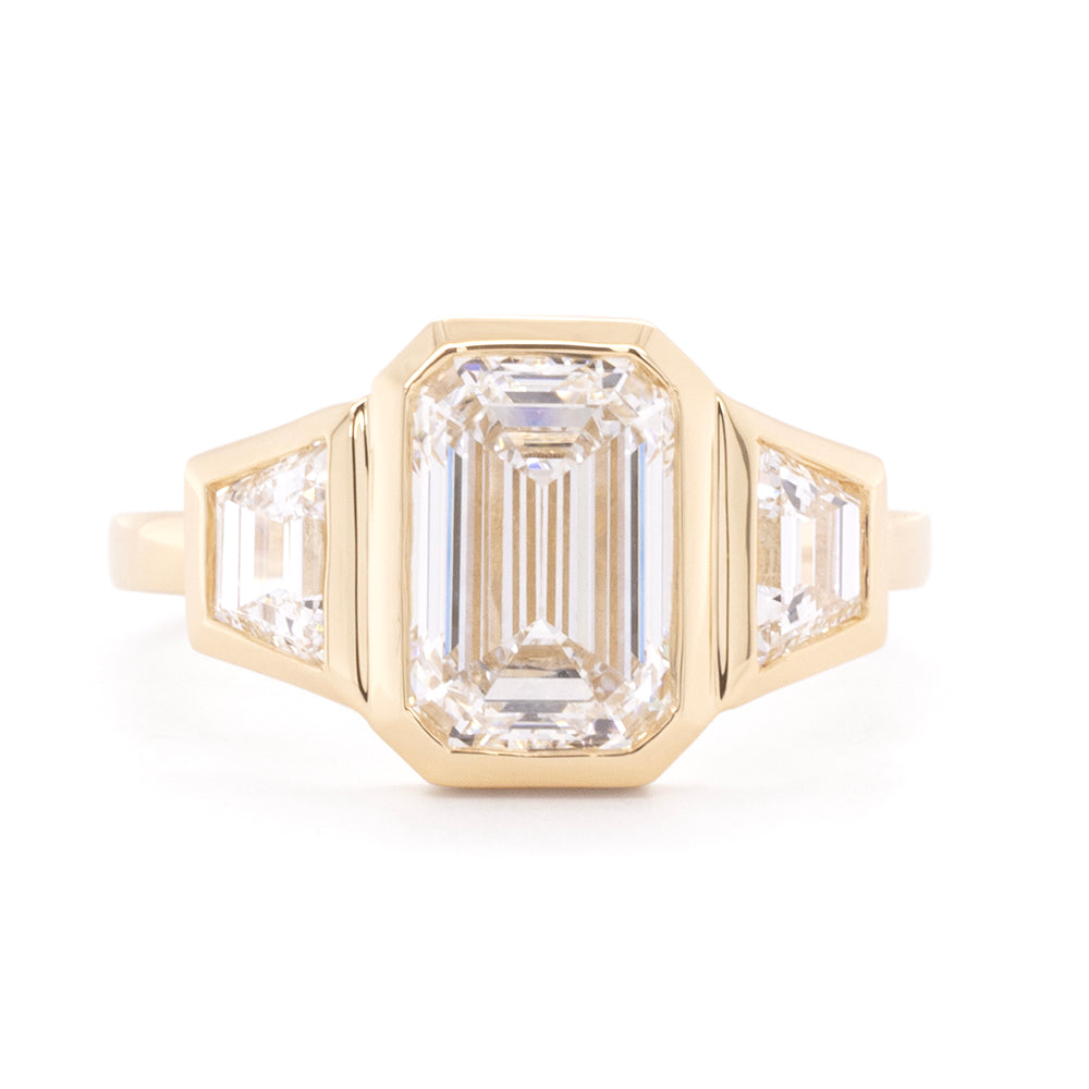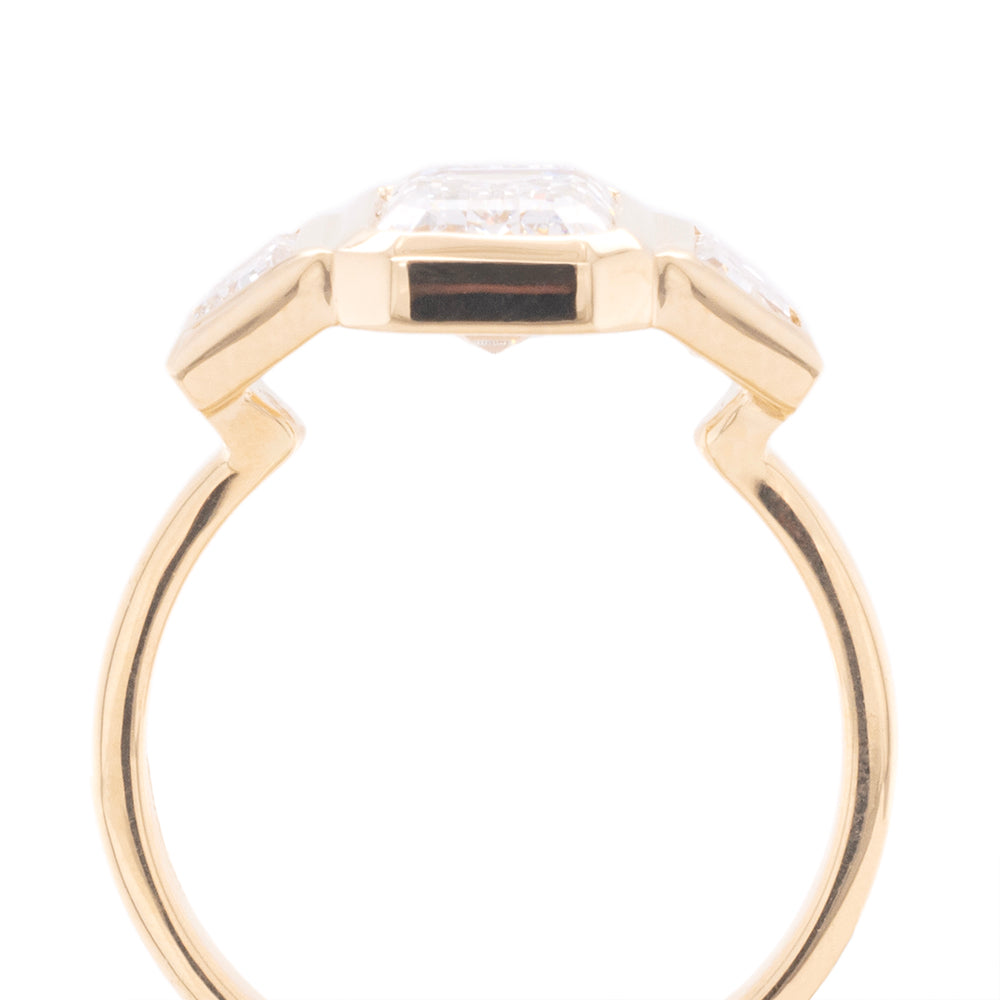 Side Stones: 2 x Trapezoid Diamonds: 0.59 Total carat weight - 3mm x 3.27mm x 5mm