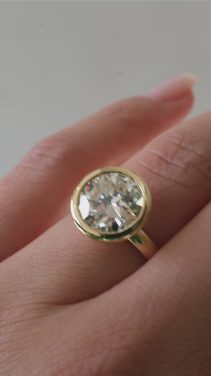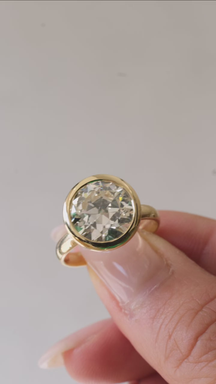 "Anne" Bezel Basket mount featuring an impressive and glimmering 3.26 carat Old European Diamond.
